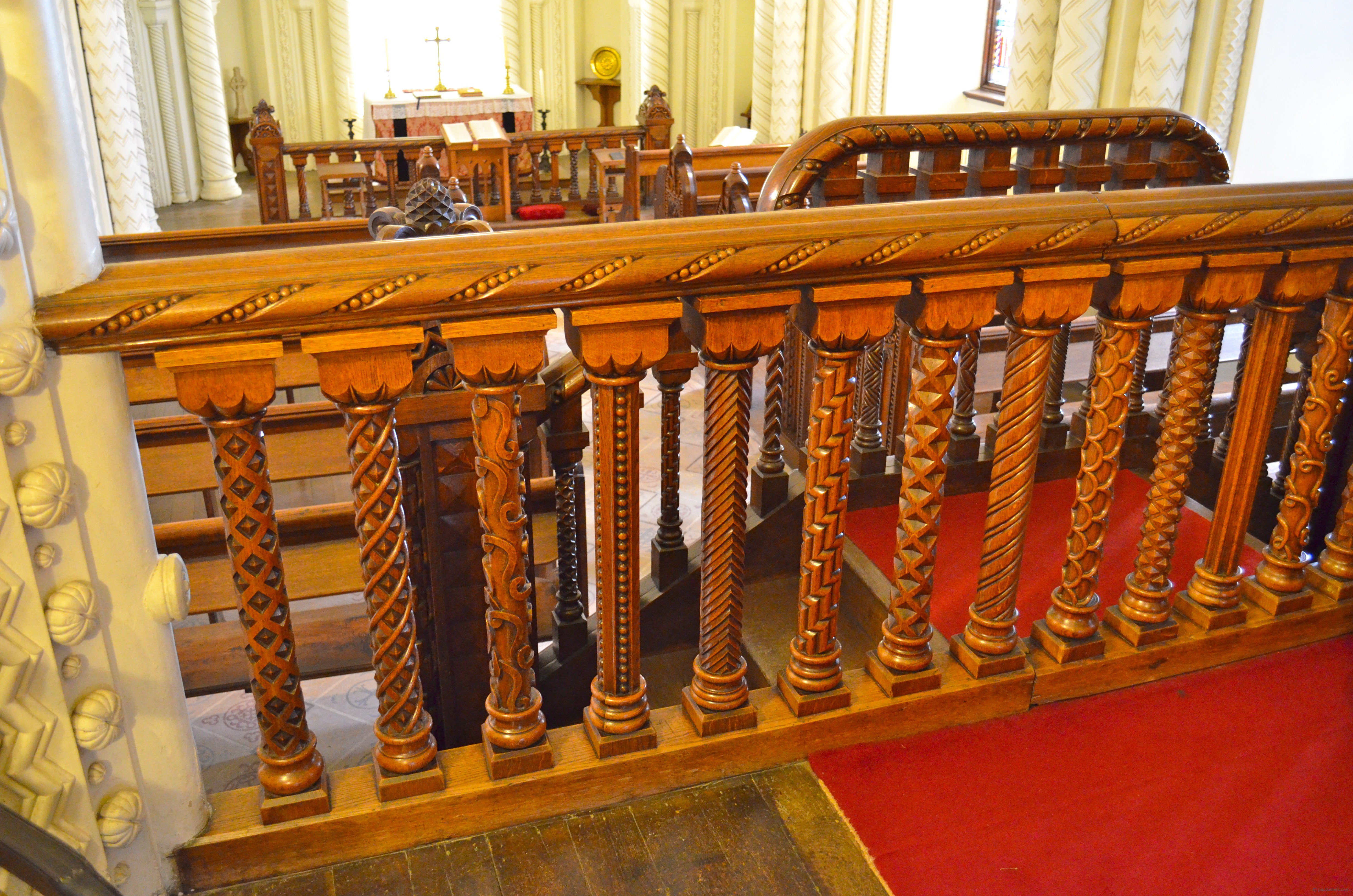 This balustrade unites the entrance with the main chapel body via a small set of stairways and each column is independently carved in its own unique characteristic carving.