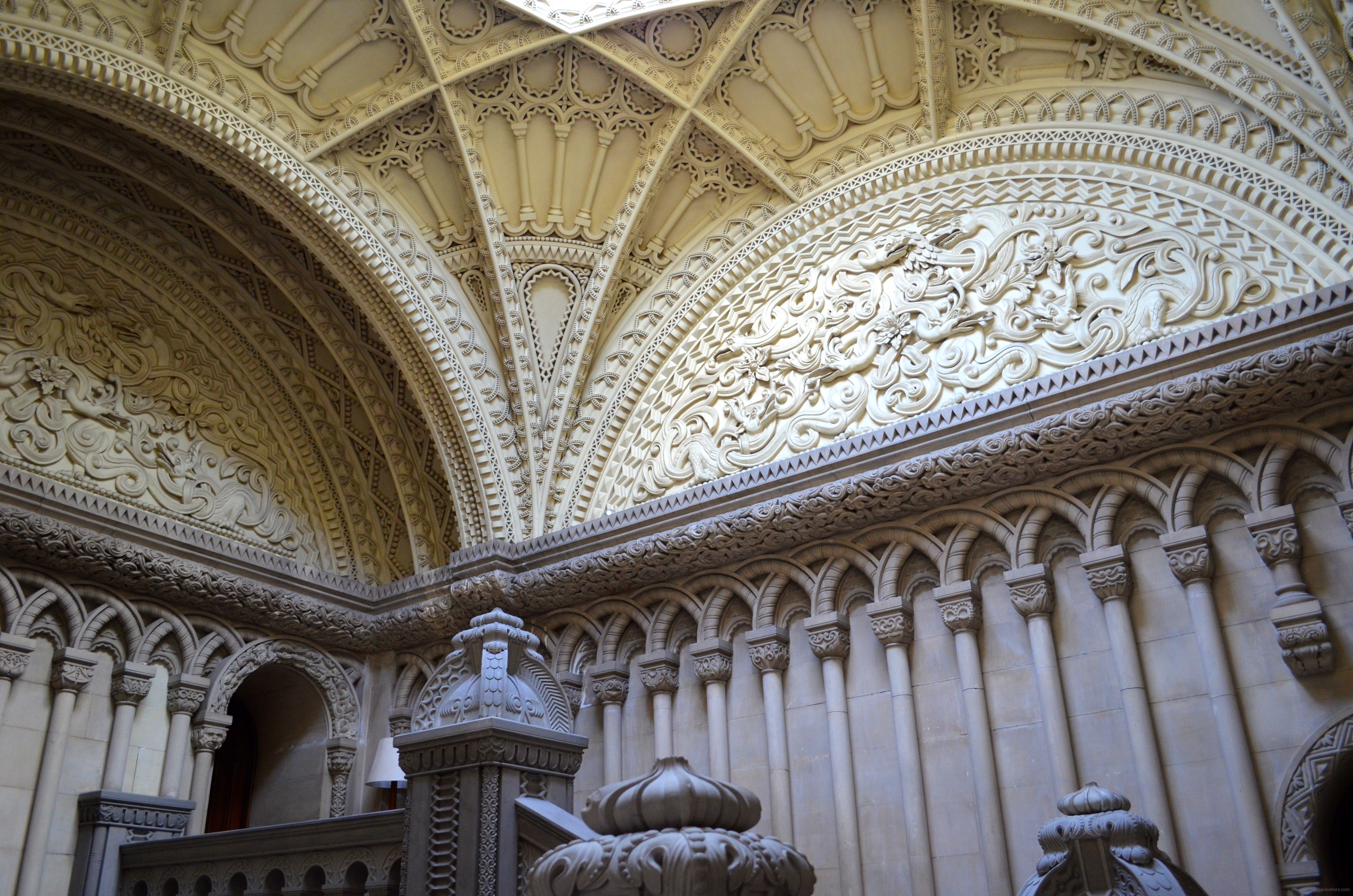 Just looking upwards to the ceiling two floors above me is too much for the eye to take in. I cannot imagine what guest to Penrhyn Castle must have thought when they saw this for the first time. I admire the craftsmanship yet wonder at the exaltation it depicted.