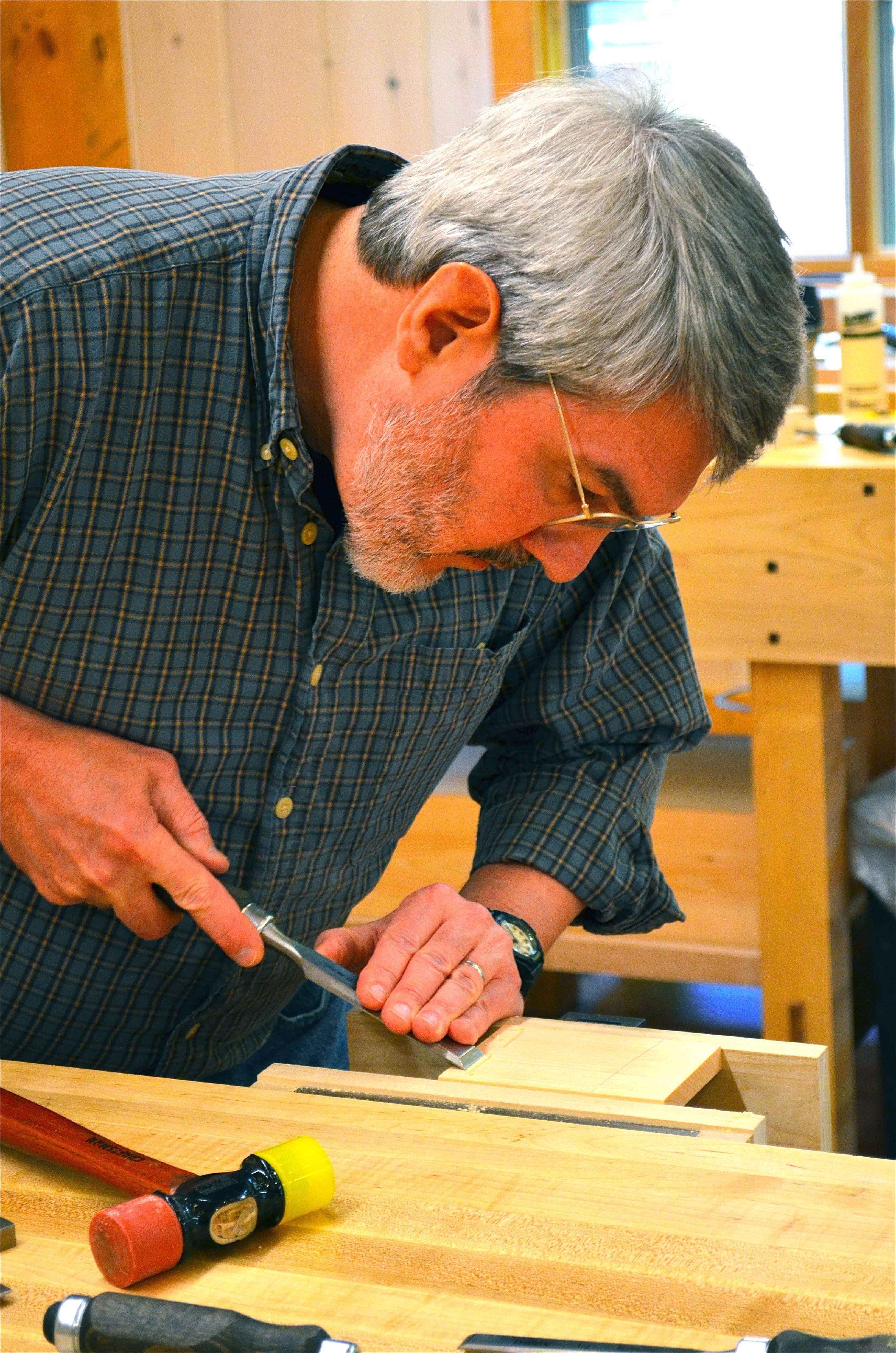 We all want perfection but want to avoid the learning curve by which it’s attained. Well, whereas there are times when someone cuts the perfect joint tight off the bat, mostly that doesn’t happen and we must trip with the saw or miscut that disappointing line by which we learn to work thee-dimensionally. When we relax, just a little, realise that we are not being judged and condemned, we realise that woodworking with hand tools is fun and can be perfected even through our own imperfection. I love these classes because all the images we might have of our own perfection come down and we start laughing…just like we did when we were children.