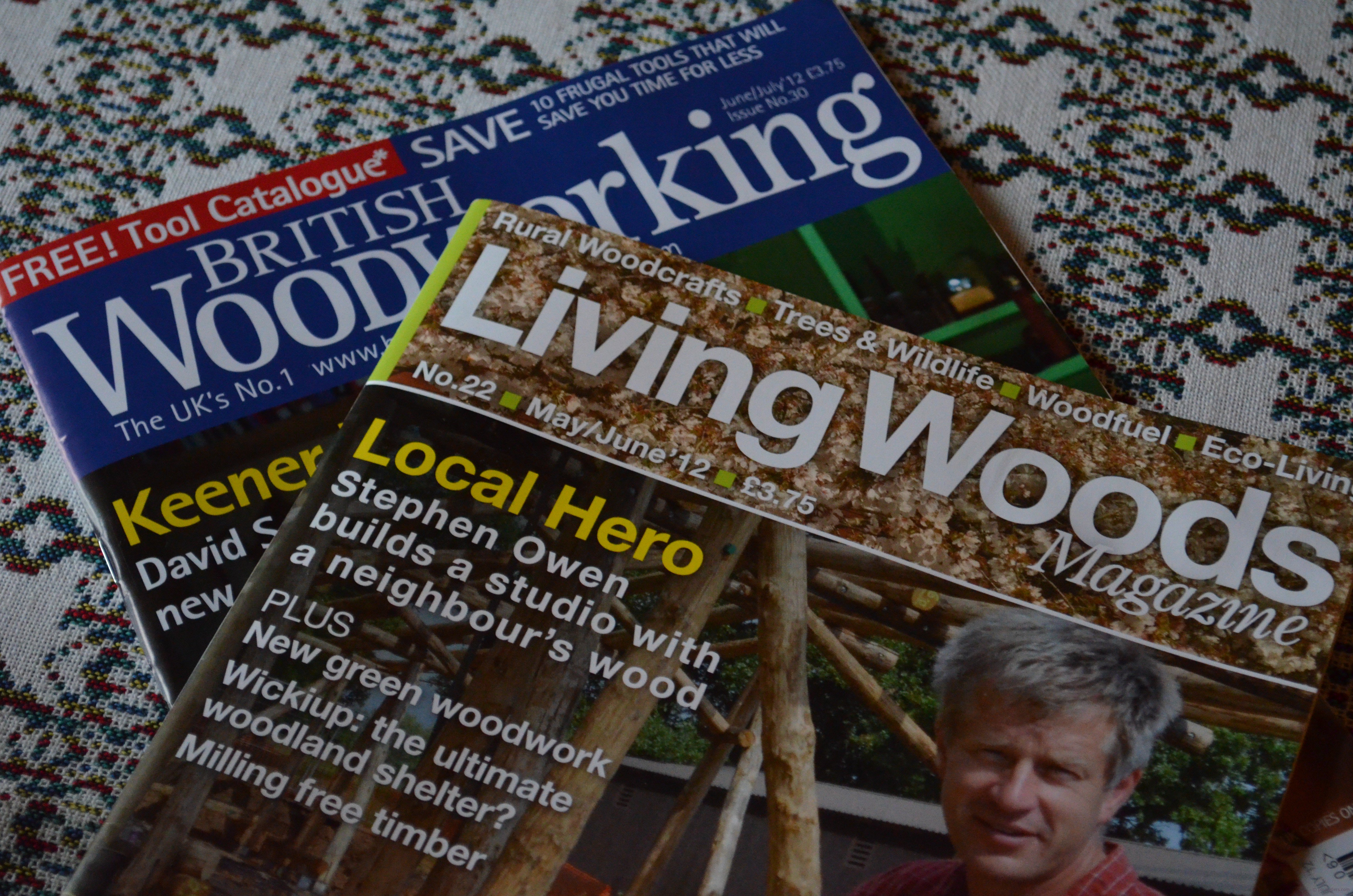 Nick Gibbs, the editor of two magazines, Living Woods and British Woodworker, came by for a visit yesterday and we talked about wood and the stuff of real woodworking. I really respect what he has accomplished through the years as owner, publisher, editor of two well managed, well produced specialist magazines. It takes something to do what he has done in that he didn’t start Living Woods as an expert in his field but as a man interested in helping people discover the unique symbiosis between woodlands and forests, woodcrafters, woodcrafts, wildlife and aspects that we might know little or nothing of had it not been for his endeavour. There’s tons of readable stuff in the mag and he keeps things current and interesting at an affordable price. Beyond even that, I think that Nick somehow manages to interconnect the complex network of British woodland craft skills with people of every background who want to know more about what they can actually participate in and that’s real woodworking at its best in my book.