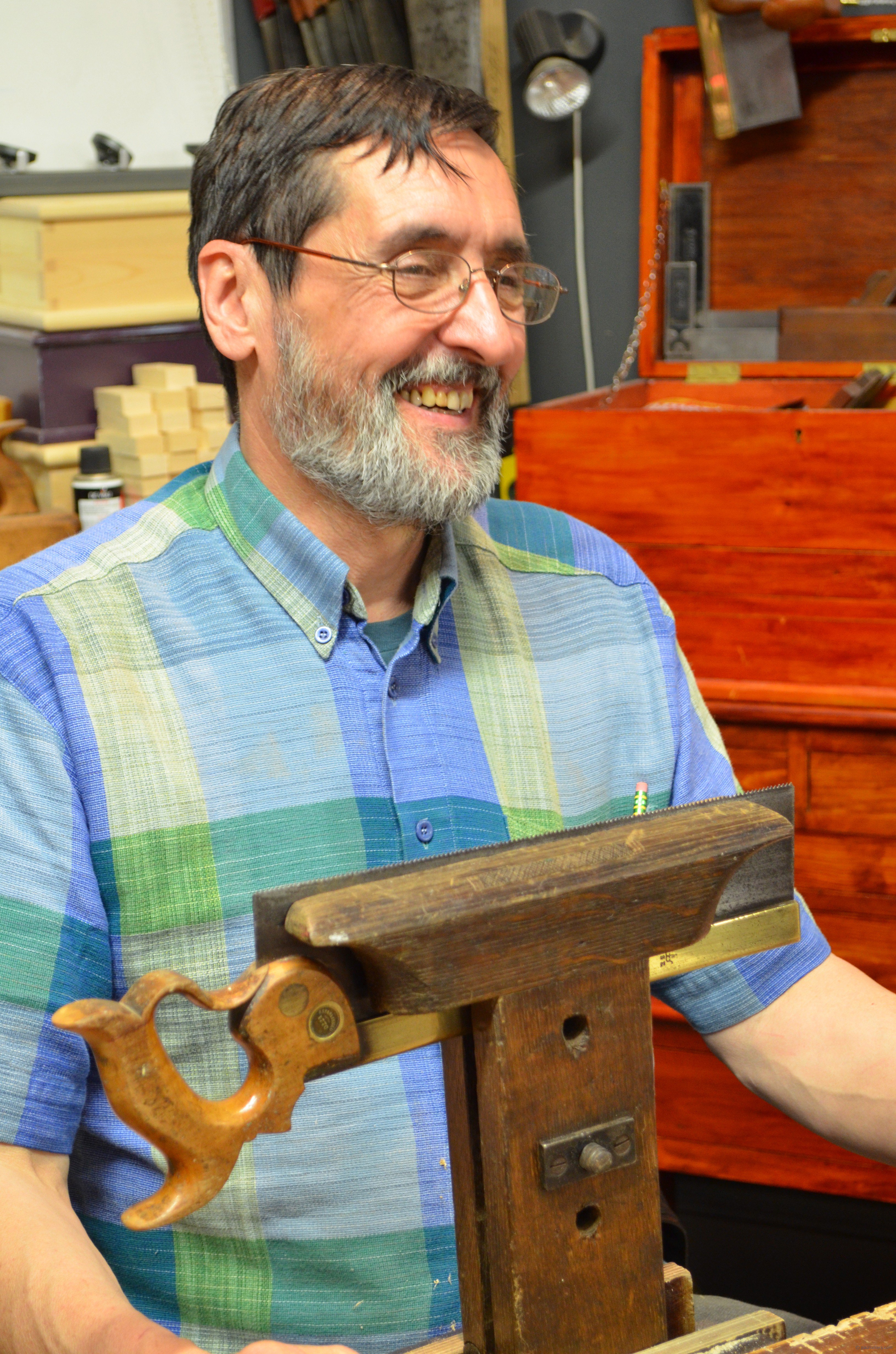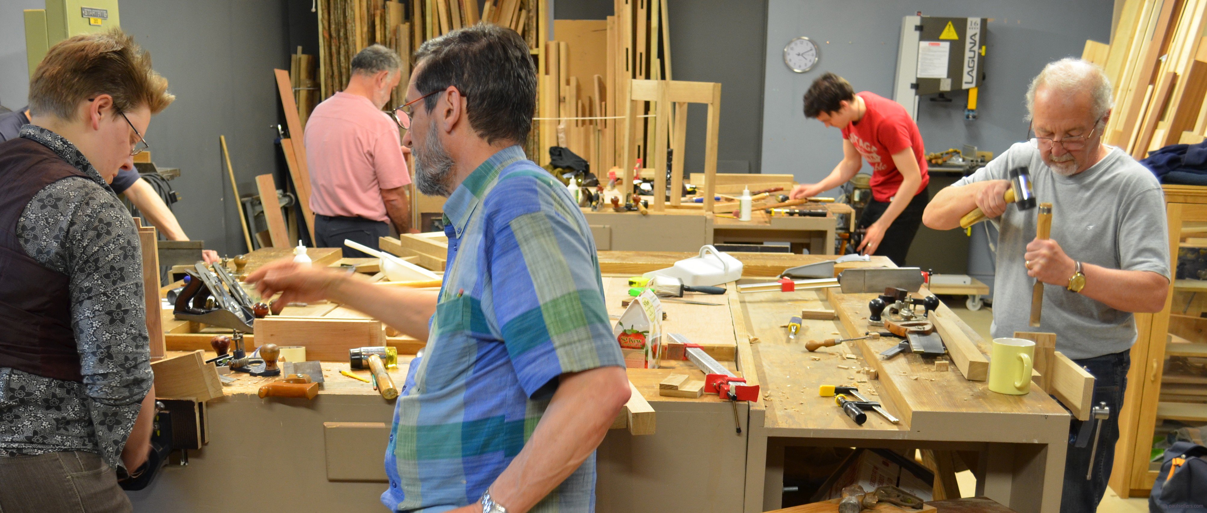 Cutting tenons seems so simple to me now. I need not think about it as I work a rectangular block end into a haunched tenon ready for it’s mortised fit. The class doesn’t find it quite so easy but they have stamina, determination and pluck. The wood has substance and they must now split, shave and shape with tools they now know more intimately than they did just 8 days ago. With their boxes done and their shelves too, they are honing their skills in table making and that’s going to further expand their horizons as they consider furniture pieces they only dreamed of making a few weeks or months ago.