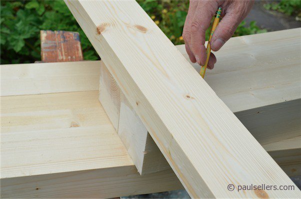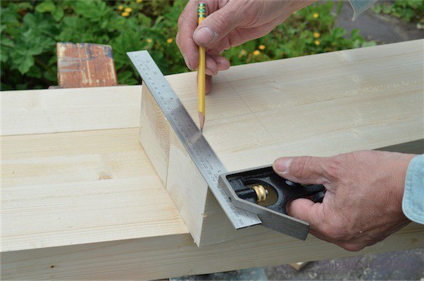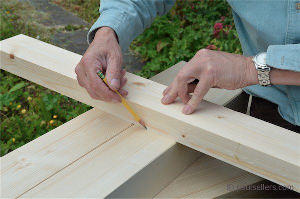 I place the cross-rail on this line and above it. This establishes the mortise width the line. I trace the position across both legs with the pencil.