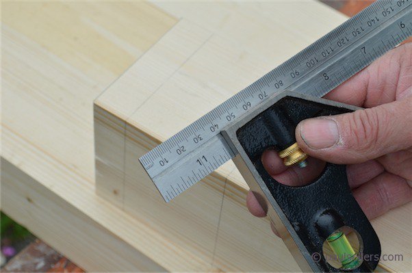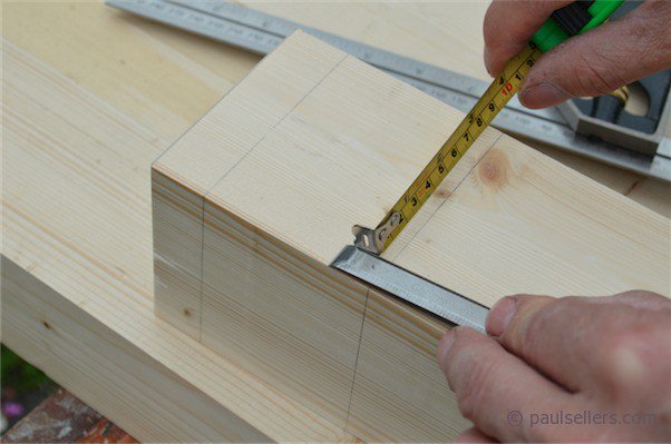For the top rail mortise holes I place the top rail flush with the top edge of the legs and mark the width the pencil.