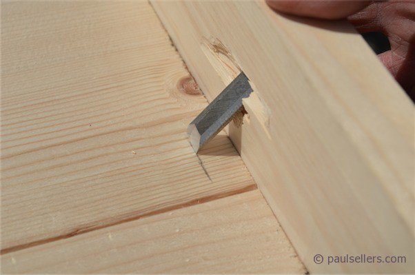 The underside of the sole often breaks out when the chisel is driven through, but this again has no consequence on the work in hand. Simply chisel away any unevenness with a second chisel.