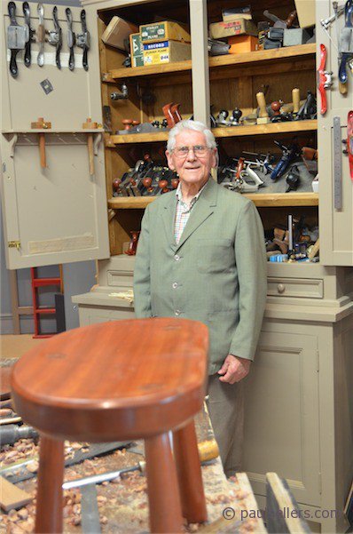 Not many men can boast seven decades of working wood for a living or even being able to work for seven decades. I am nearer than most having worked wood for five. This gentleman joined the throngs in my workshop yesterday and made the passing comment most do about bringing back "fond memories." I stopped working on my stools to talk to him. He was a builder and worked a large amount on joinery. We chatted together for a while and his son came in and chatted too. A short while later another joined us and then another small boy. Here we had four generations standing together looking at and talking about my work. The gentleman, for that's what he was, a gentle, kindly humble man, told me that he was 91 years old. I was amazed at the manner of this gentle, manly man. He had strengths and character I lament the loss of in our present age. A man who never swore or complained to be accepted by his peers, a man who liked being, well, a workman, a man who treasured honest daily work who never sought the flash-in-the-pan stimulations of today's world of work and was never the centre stage performer. His son was telling me that his father had been helping him put in a loft conversion on his house.