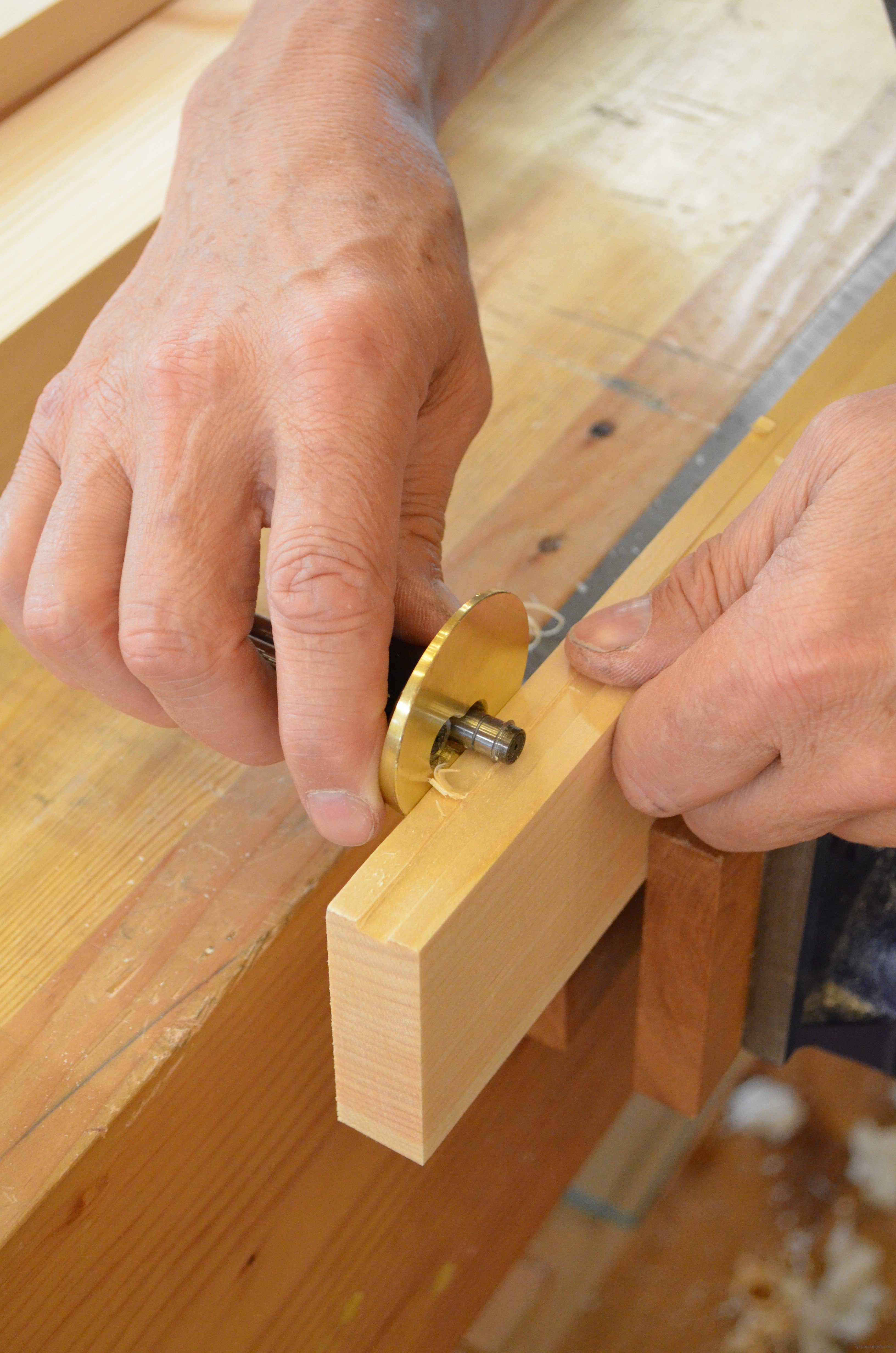 To develop pristine internal corners to the groove you are ploughing, make a short start at the beginning, this is the point at which you start anyway, to delineate the exact position of the sides of the groove. Now set the marking gauge cutter to the wall set by the plough and run the lines parallel to the edge, along the length of the wood to be ploughed. Do the same to the opposite side, pressing both lines to the depth of the stem of the gauge. This cuts the wall of the wood to a depth of about 1/16".