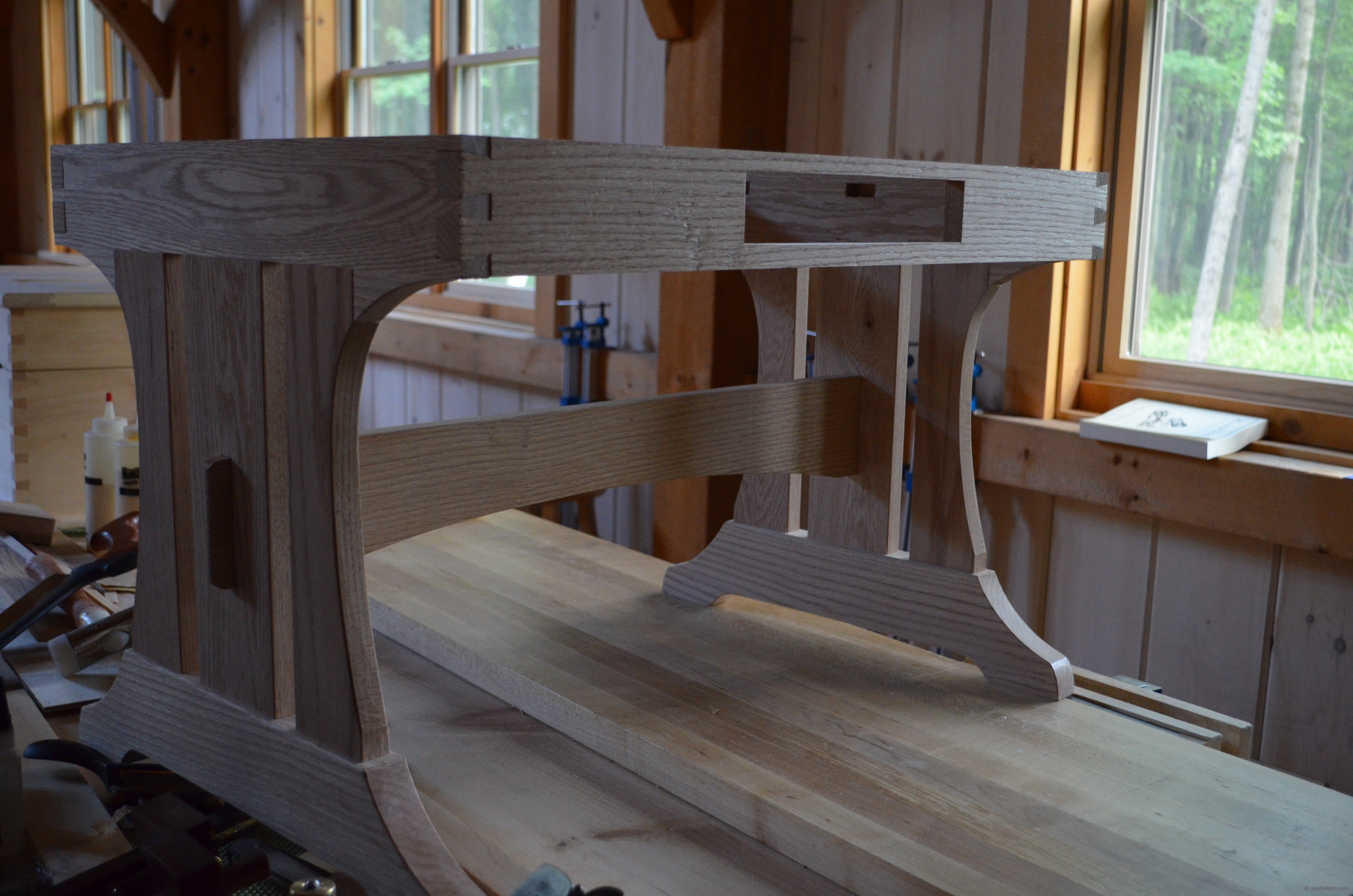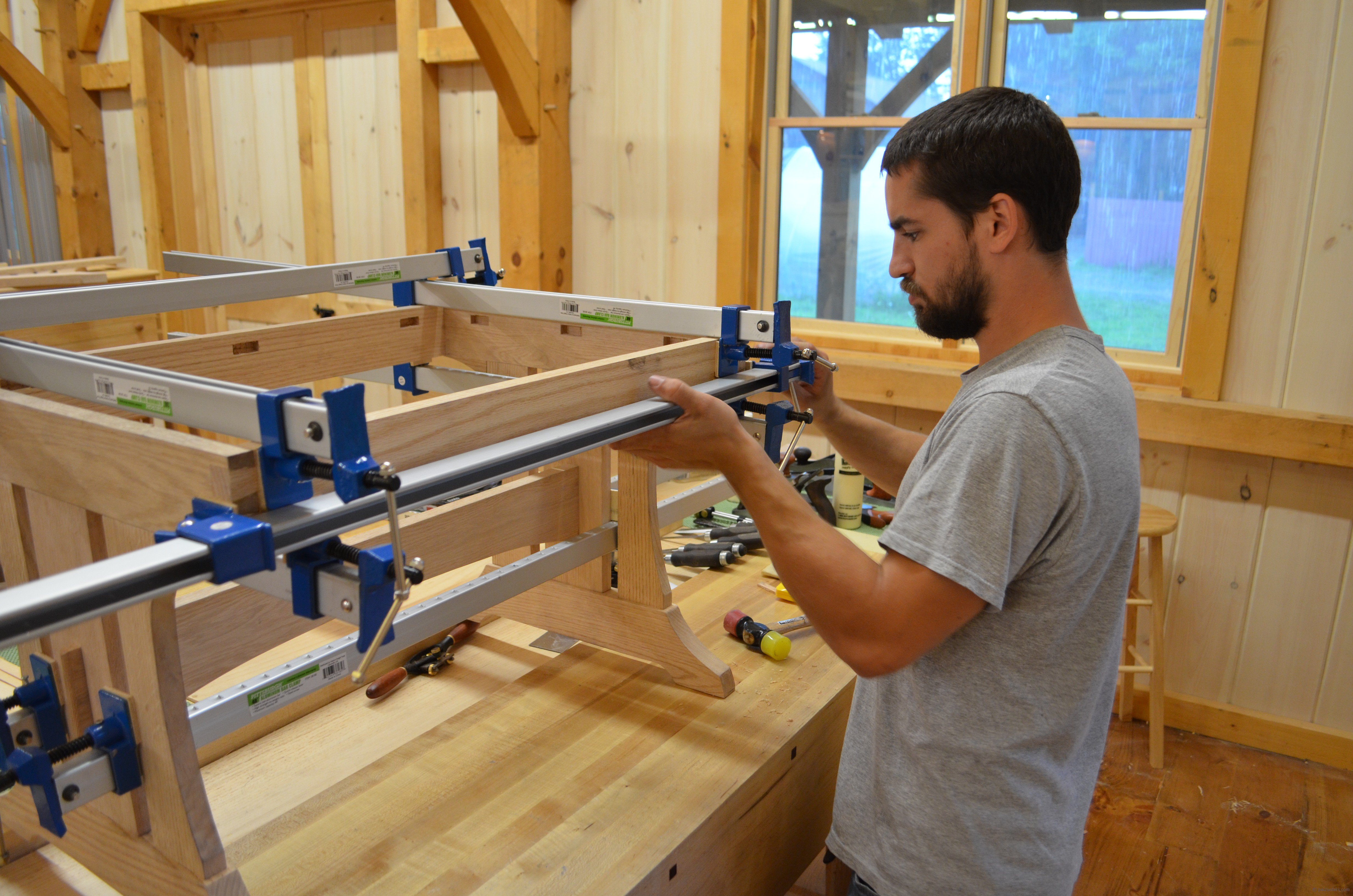 Many units are glued up and clamped in part or whole or are are fully jointed and ready for that critical stage when you shut and bar the doors, refuse the cell phone's ringing and get the clamps at the ready. Eric has his top glued and his table in clamps to dry over the weekend. Others are closely following and are about within one day of being at that point. So it looks like we start the Craftsman rockers on Tuesday. There will be twelve rockers on the go, which makes me think that I am off my rocker for even attempting to do this, but in times past I regularly had sixteen students making rockers so this should be a breeze, right!!!