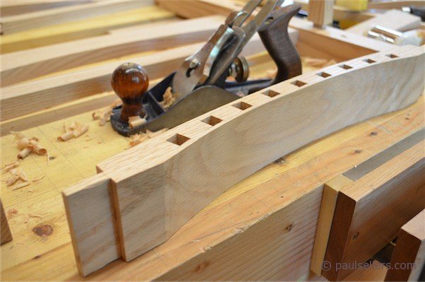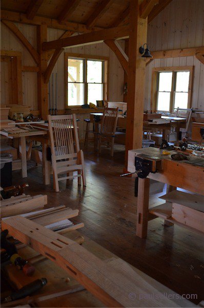 Today we will be as busy as ever. Most of the chairs will be glued up by this evening, but there is still much work to do as we shape the rockers and arms, prepare for the leather upholstery and so on. It’s a demanding project, but because of the groundwork we do in edge tool sharpening and tool techniques around my bench every day we quickly develop the skills I learned as an apprentice and it’s this that makes the difference. We have a another month long class proposed following the same plan as this one for next year and also another month long which follows a different path and covers carving and inlaying, concepts of design and again using projects as the vehicle for imparting skill. I must often remind my students that the projects they make are of secondary value to the skills they must master. Not one of them now hesitates to sharpen their tools or adjust them to task. Combining these missing ingredients with a working knowledge of hand tools has made them into workmen capable of creative work working with an wood and all of that within about five weeks around the bench.