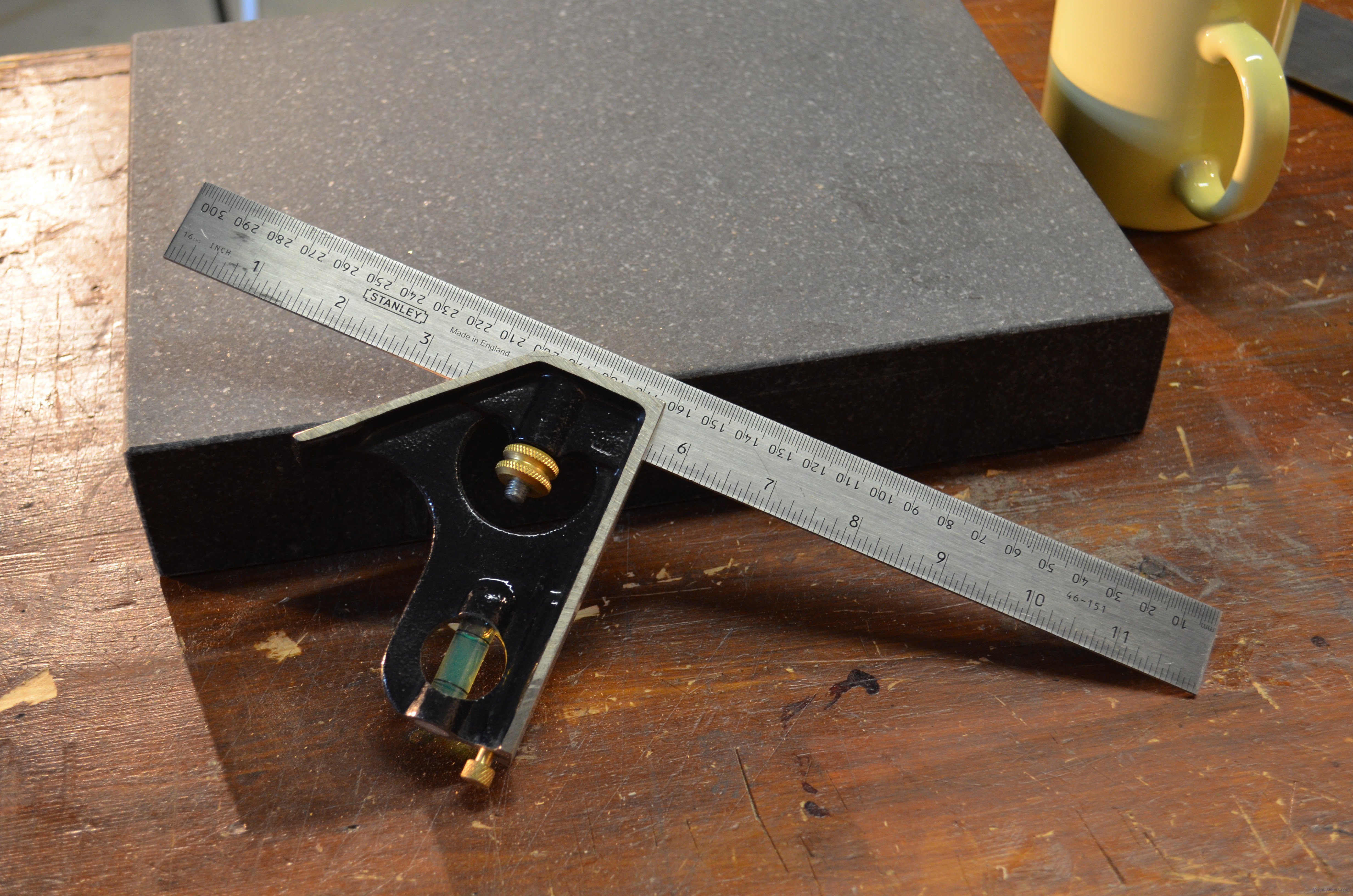 We have used new squares at the school in the UK for three years. We use a Stanley Rabone square that has a cast iron stock and hardened steel beam. Their reference number is: Stanley Rabone Combination Square 12" - 300mm Professional Cast Iron 0-46-151. This one I bought brand new online on eBay for £12.99 plus £1.50 shipping. There are many other suppliers selling for under the £20 mark but many selling at regular retail, which is still good value for money at £28.