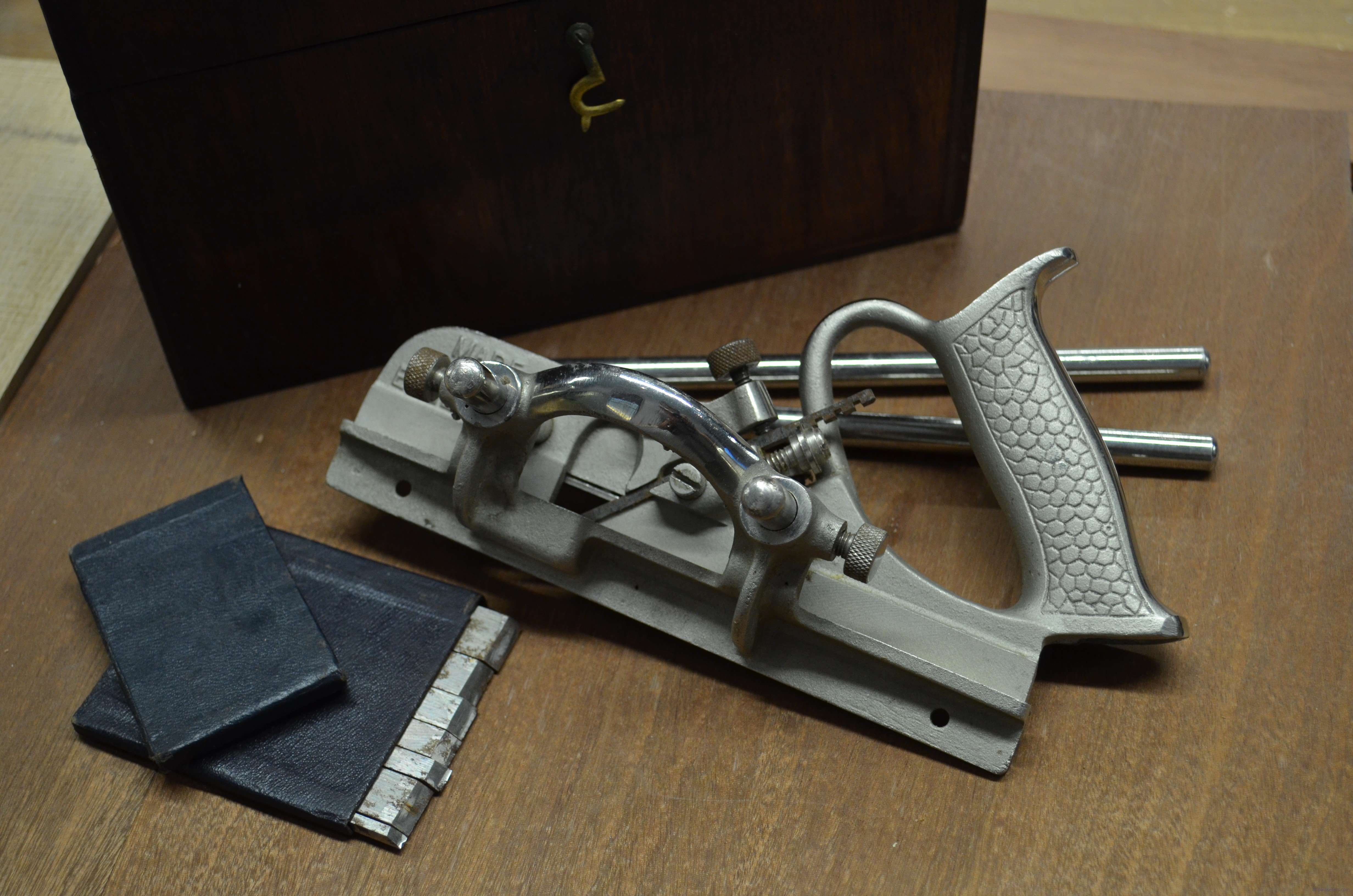 Well, with this plane there is very little to go wrong. I have found several of these plough planes with full accoutrements including extra length bars and all 8 cutting irons from 1/8” to 9/16”. Even if they have none, these irons are easy to make with a hack saw, flat file and some 1/8” O1 steel flat stock from MSC (USA) Click here.