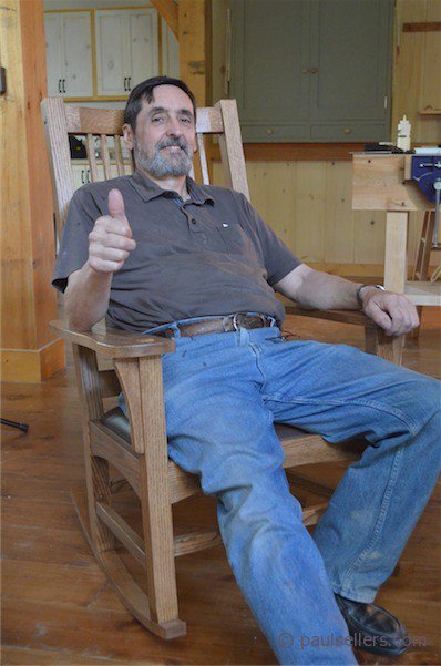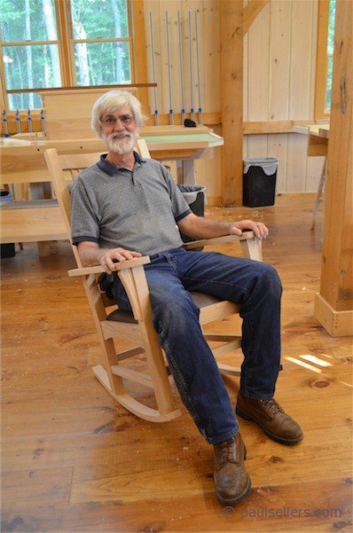 Today I watched Gaylord working his rockers onto the tenons of the frame. Yes, he was a lttle tense, but progress continued flawlessly and by about 7pm there was grin I hadn't seen before on his face. That doesn't mean he hadn't had successes along the way, but this was the icing on the cake for us this evening.