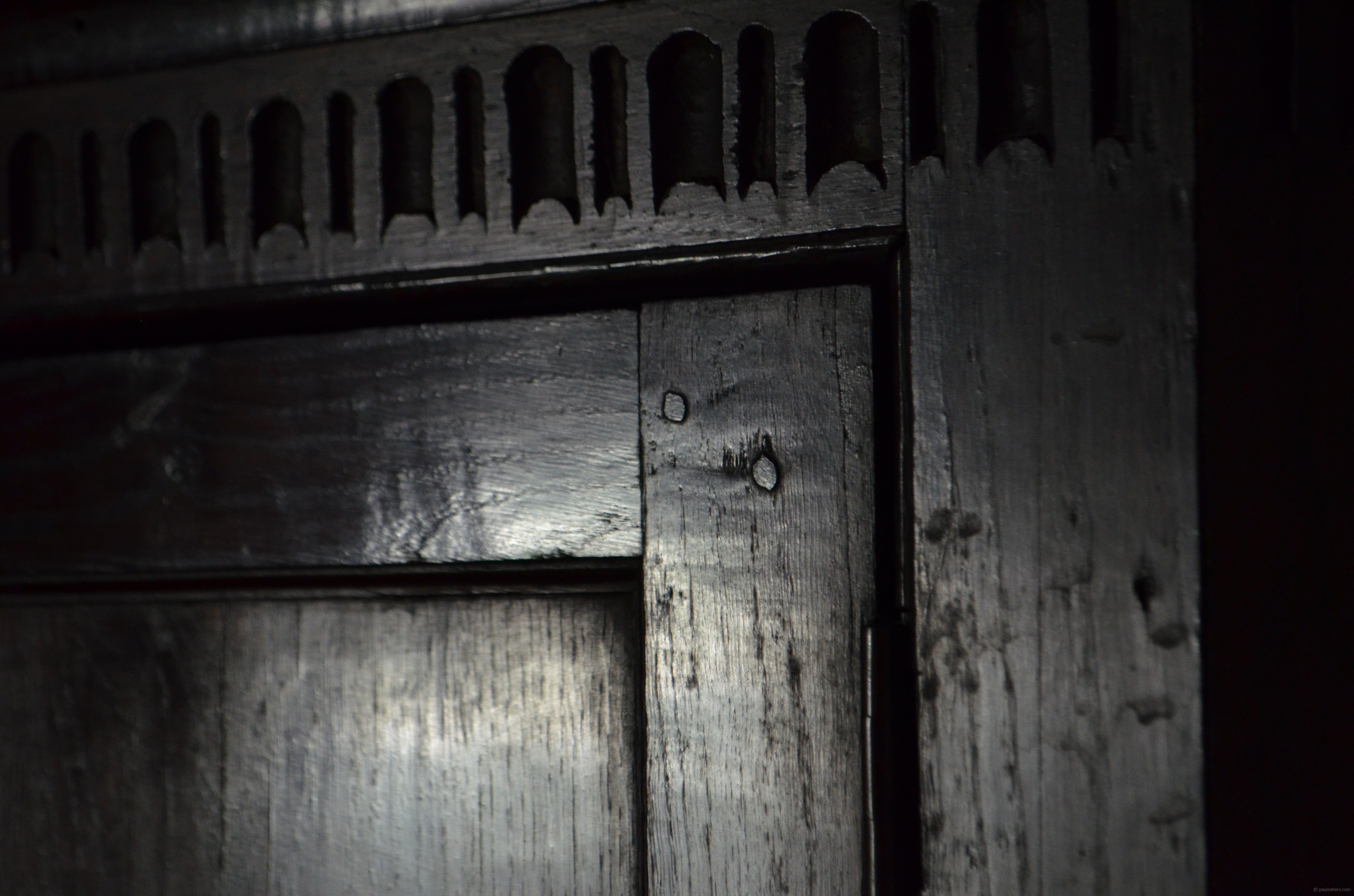Modulation and harmony make textured melody in wood, and music and life beyond the tools sharp edge and we look with awe at the thought that no engine or machine created what we see. A pole of wood bent in its spring rotated wood into the gouge held askew and a plate of steel shaped arches from chestnut and oak. A lock filed from brass and drilled with steel reamers holds the doors secure from pilfering hands. And it's all more texture than a man can perceive the fulness of.