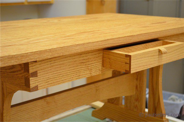 I like pictures like the ones I have chosen here. The addition of the pen and paper drawer are on my coffee table. As part of the new book, I want to reinforce the methods I use for making half-lap dovetails that guarantee pristine joints even when they are your first half laps.