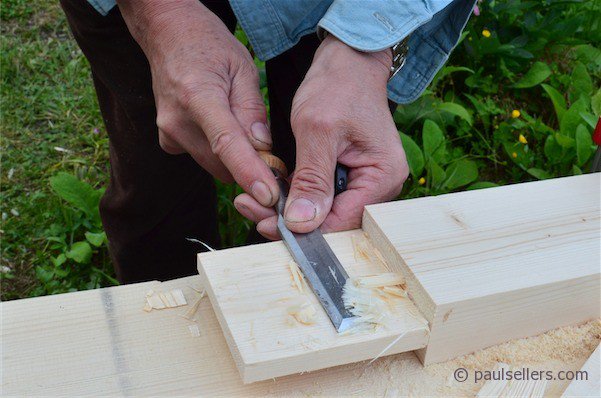 We always assume that the best way to cut tenons is to saw them. I think that may be because all books show sawing tenon cheeks and not chopping or paring them. I do saw tenons and indeed teach people how to saw them, but I also encourage the bold step of chopping them because for the main part I split my tenons by using a wide chisel to separate the waste wood from the wanted. I mostly split my tenons rather than saw them. Why? Well, splitting tenons is really much more pleasant than sawing, it’s easy, fast and accurate to do and a 2” long 3” wide tenon can be split and pared to finished thickness in two minutes or less when the shoulders are cut ready to split.