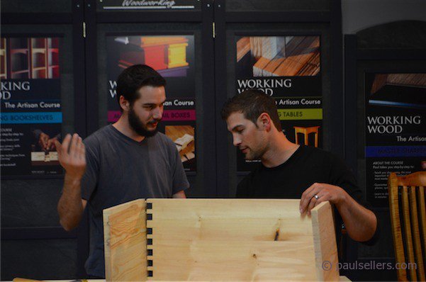 Wood splits and chisels slip but that’s what we master and, as they progress, the students mistakes and slips lessen. At least that’s the plan. They remain directly attached to their work, seldom breaking from the task and always willing to work the wood differently when shown a way that might correct something that failed. There isn’t much conversation. They don’t really know one another, but that’s not the reason. They are too engaged with their work, too busy, to intense, but soon that will diminish a little and friendships will grow. I like that break that comes and we share more with one another. Today was a great day all round. Dovetails gradually came together. By tomorrow night we will have the main boxes together and glued up. Some will be perfect, some close, and some not. There will be tool boxes very soon. That’s what matters. These guys have invested themselves in this. It’s cost them to be here. Time, money, effort. It’s cost their families and friends, employers and colleagues in some measure great or small. I like that they chose to spend 30 days with me. I appreciate it.