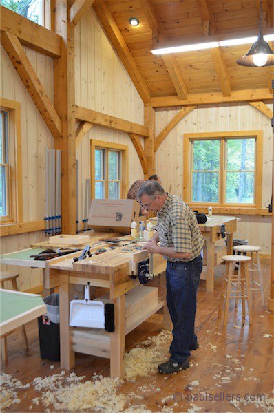 The workshops in New York were purpose built in two halves. Something I have always aimed for in my own life since the mid 1980’s. There is nothing unhealthy in a hand-tool-only workshop, but as soon as you introduce power equipment, hand held or stationary, that all changes. A lot of woodworkers insist that using extraction resolves the issue but by that I sometimes think that they mean a clean shop with no sawdust and planer shaving lying around in piles on the floor. This to them means health and safety is complied with, but in reality, whether they are in a bag or on the floor in piles is not really an H&S issue. Of course there are no health and safety regulations in place for home or private individual workshop shop use. Regulations generally cover commercial shops with employees and multiple user facilities. Even there, most shops do not comply with every machine. In home or domestic workshops we owe it to ourselves and those around us to be health and safety conscious. Dust remains in the atmosphere for hours after the extractor is switched off. The first thing we do when we switch off the machine is remove our dust masks yet the most harmful dust of all is the fine dust in the atmosphere that escaped the extraction units. What better way than to walk out of that environment and into a dust free hand tool shop. Dust is a killer. We develop allergies to wood types. No wood dust is safe dust; especially in your lungs, throat and nasal passages.
