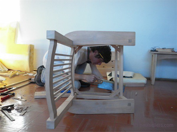Here is a photo of John working on his knees as all furniture makers must at frequent times. May as well start young. Taking a young person or an older person into the workshop for a year has far reaching implications. As John becomes experienced his gift will create a place for him and he will train others as I did perhaps. So we pass on our skills, take criticism on the chin and face failures with some we hoped to work with and train. Outcome? One in five make it.