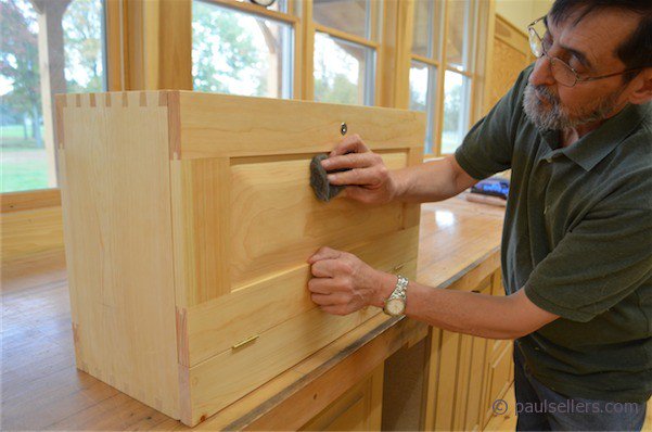We really had a blast all through today. The wall/bookshelves are almost together in terms of cutting the main housing dado joints and it’s remarkable how well made the joints are. We have a surgeon in the class discovering hand tools for the first time (we have had a surgeon in just about every class we have offered this year), a paramedic discovering hand tools and loving it to the point that she doesn’t want to stop for lunch or dinner, a recently retired police officer who hardly worked wood but discovered before it was too late that he has a gift, and a postal worker who can’t wait to work wood at home for therapy. Beyond that we have teachers and a professor, a pastor and a retiree or two. The age range? Anywhere between 30 and 60 I’d say.