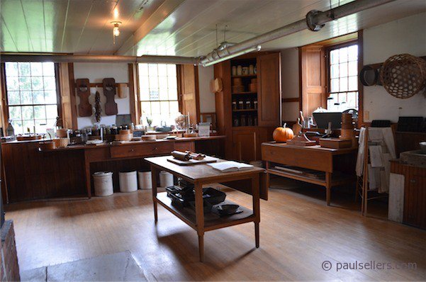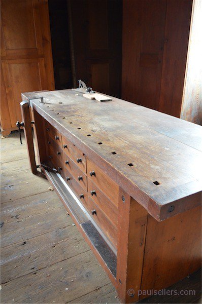 In the old or ex-tannery is the woodshop and it reminds me of my own woodshop and my tools. This was the heart of Hancock village woodworking. Furniture making, which of course was as much joinery as it was furniture and as much woodworking as any specific craft within the various woodworking craft trades, included a wide range of built in cupboards and shelves of every imaginable type, shape and size. It pleased me to despecialize the array of titles we were given to use through the decades of the last century and see the whole as simply woodworking or working wood.