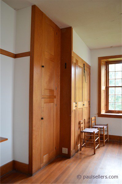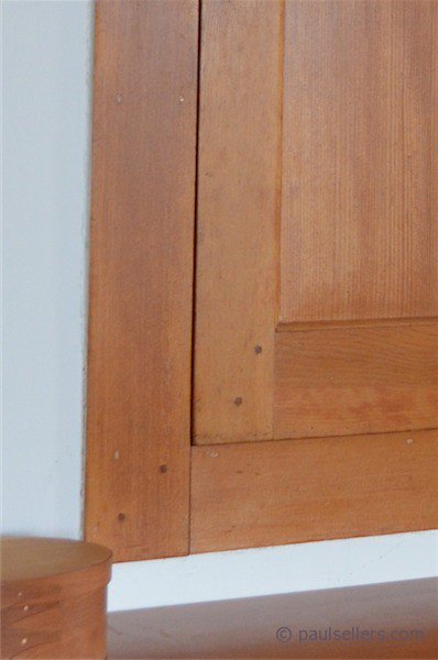 At the end of my visit today I concluded that there was minimal shrinkage in all of the pieces I saw. Shoulder lines on doors were remarkably tight. The same doors, both large and small, fit within their frames with 1/16” tolerance everywhere I went and so too drawers within their recesses also. I loved the fact that so much was made from softer woods and that the work was so very vernacular to become Shaker styled.