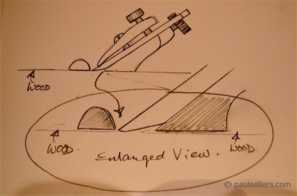 I meant to take pictures of a common problem with spokeshaves bedded at 40-45 degrees. This type includes almost all of the metal-cast models we know and love including Veritas and #151 models and more. People who tend to sharpen with micro bevels would best just sharpen a single bevel of 30-degrees. This gives an uncompromised edge with strength and sharpness equaling any micro bevel sharpening method because it delivers exactly the same physical cutting edge quality. I also recommend a honing guide for this because the short blade length plays havoc on untrained hands that have not yet developed hand and finger muscle and the resultant strength you get when development is achieved. Using a honing guide does give you the training that will reflect in the development of these key areas. To use a honing guide requires a additional extender to house the iron in as the iron itself is not long enough to hold in the guide and extend long enough to reach the stone for grinding.