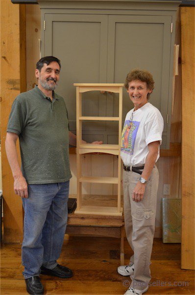 This was at the end of yesterday's book/DVD shelf workshop, which is Part II of my Foundational Woodworking Course. Bobbie wanted to stay on but duty as a paramedic called her home. To say nothing of her cat and other animals she has in her life. We had a blast and she is the only person ever to convince me to buy a corrugated soled number 4 Stanley plane, which I need as an example to show people what not to buy.