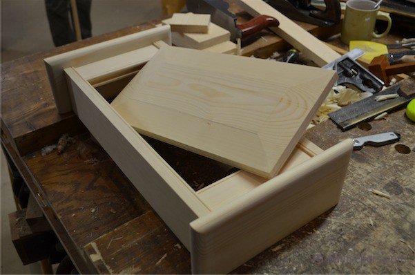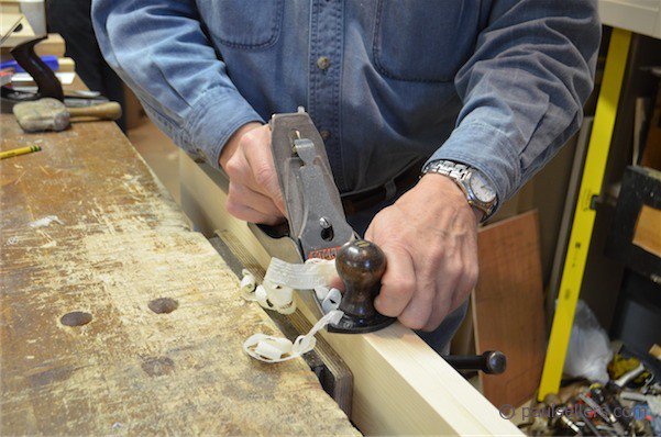 This is Joe. I forgot to ask him if he ever used a bench plane, but I know he didn’t use one well tuned and set up like ours. It was graceful watching him this morning as he skirted the perimeter of his new box. Bevel up or bevel down is of no consequence. Both work equally well and a bevel down will do much more in general bench work and furniture making than any bevel up ever will. People don’t yet know that because they are becoming as besotted with bevel-ups as they were with power routers and such. Anyway, I like both plane types and don’t want people to be misinformed by editorial tool reviews in magazines. They, especially British ones, don’t give good practical insights very often, more an opinion and that's not often worth very much. Most if not all magazines are purely advertising vehicles, companies paid and receiving primary income from advertisers and magazine sales and we should never lose sight of that. Biased? Of course they are. Their wages come from selling magazines with advertising space. That’s the bottom line. That's reality and that’s fine too because after all companies have legitimate need to sell what they produce. So, back to planes creating works of art in the hands of woodworkers yet to emerge. Bevel up planes are a hit and I can see why. Their main downfall is of course when they hit what we call rising or short grain. This happens when the angle of the grain at certain points in a board are the same or similar to the bedded angle of the plane. The plane’s cutting edge enters the grain and the grain is lift rather severed by the cutting edge, which splits the wood, and doesn't really hit the cutting edge and so the surface fibres of grain are wrenches rather than severed from the whole in the usual manner. This happens less with steeper pitched planes such as the Bailey and Bed Rock pattern planes. When a bevel up plane is on the right grain, nothing quite compares with it for finish.