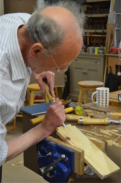 One of the greatest influences on my life was a photograph of Edward Barnsley's workshop many decades ago when he was stood in clutter and surrounded by a group of young men he was apprenticing. His beautiful chairs spoke volumes and so too his presence in age training young people. That picture became my goal and I have done it and am doing it. Who knows what the outcome of things will be.