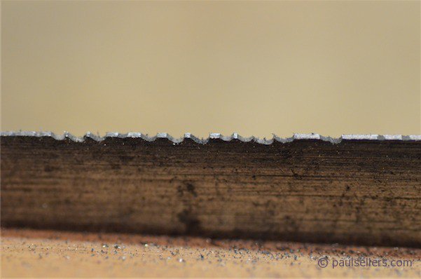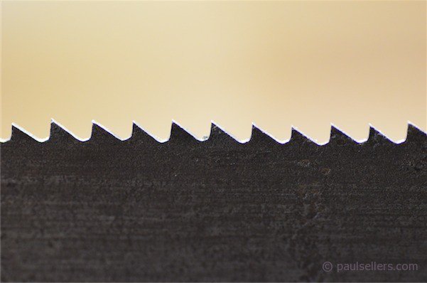 Firstly, I file off the teeth with a 10” single cut flat file. All the teeth should be removed to the lowest gullet point Any compromise can lead to another hollow spot or a missing tooth, depending on where the low point sits in regard to the teeth you recut. Some time back I had hoped to come up with a resistant material that I could cut teeth into that would guide my saw file for recutting perfect teeth - the material was sitting right there in my shop and I had hundreds of options. Wood is fairly resistant to saw files.