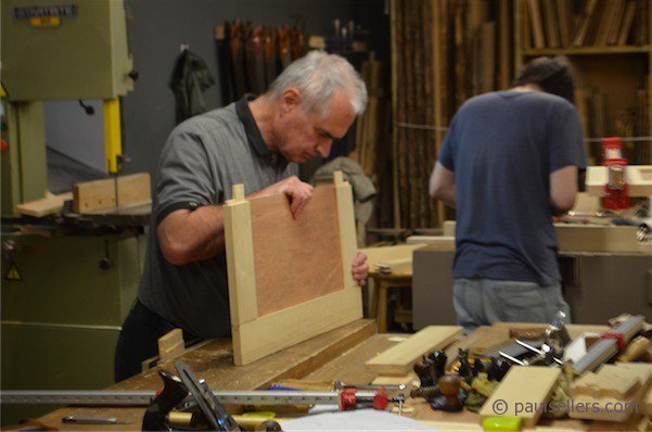 Beyond the list of endless possibilities, our quest is simple in all of its complexities. Box making starts the main body of construction, dovetailing and layout, accurate sawing, paring, fitting and fixing flaws professionally. The following phase introduces the lost art of hand cutting mortise and tenons joinery in paneled doors. These skills are identical for other joinery types; a massive range of such work and yet my methods remain simple and clear. I am equipping my students and they are receiving the best I can give. Panels raised with a simple smoothing plane works so effectively and efficiently. I admit, it wasn’t as easy as I made it look in my demonstrations, but guess what? They each did it and the panels look lovely now framed within a mortise and tenoned frame that they jointed, grooved and raised by hand.
