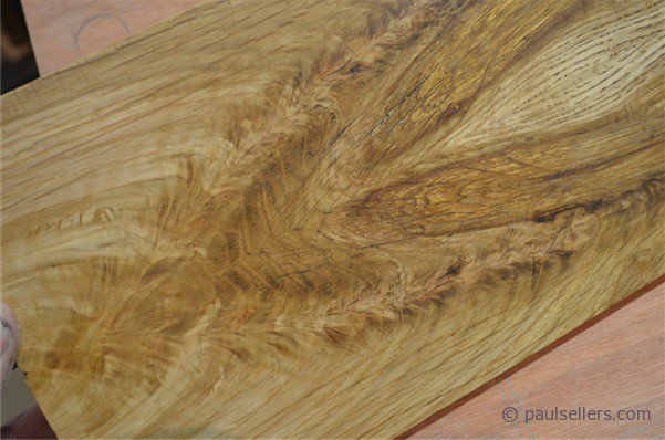 This piece of white oak was really a piece of junk with some soft, spongy punky areas around the knot when I bandsawed the 3” wide section down the middle.