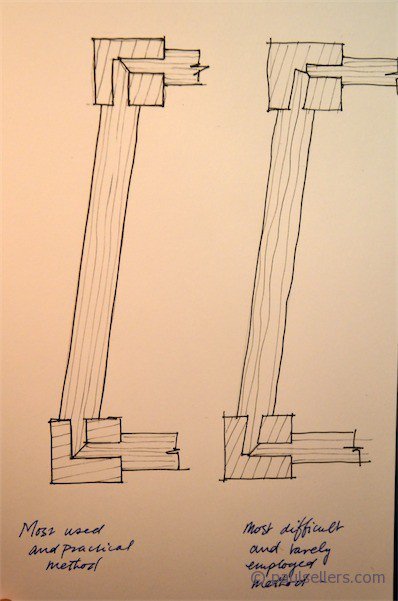 Jeff Miller, a furniture maker in Chicago, answered on behalf of FW and told the questioner quite rightly that a straight tenon into an angled mortise was more difficult to make. That, for me, was where the good advise ended. He then went on to say that the ‘inline' tenon “is a better choice for two reasons.” “First,” he writes, “because the tenon is straight, the grain runs along the length, making it strong.”