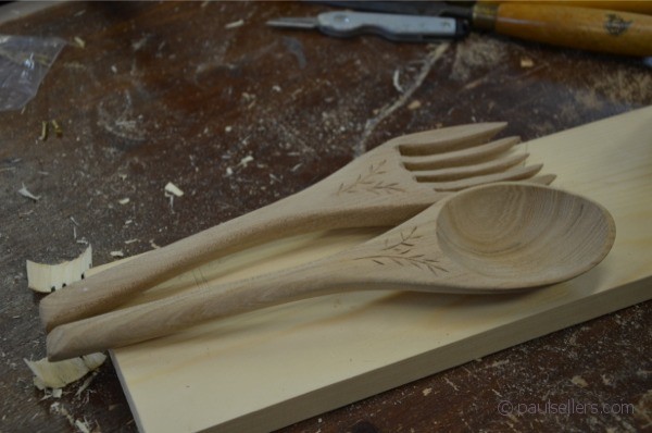 I finished a pair of elm salad servers for home and remembered the sad loss of elms to the Dutch Elm Disease.