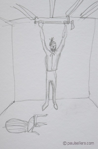 My thought is this. Having made and sold many thousands of canes to individuals and pharmacies throughout the US, I saw the added aesthetic of a wooden walking cane that had greater substance and weight than those available for general use. Almost all of my canes were made from white oak, but I also made some from red oak and other woods too. Straight-grained oak in the sizes we will be recommending will be almost impossible to break even when a 200-pound man hangs himself from the centre and the ends are supported as shown in my sketch (I'm not saying do this. I tested one just now to make sure, but I am 175lbs.)