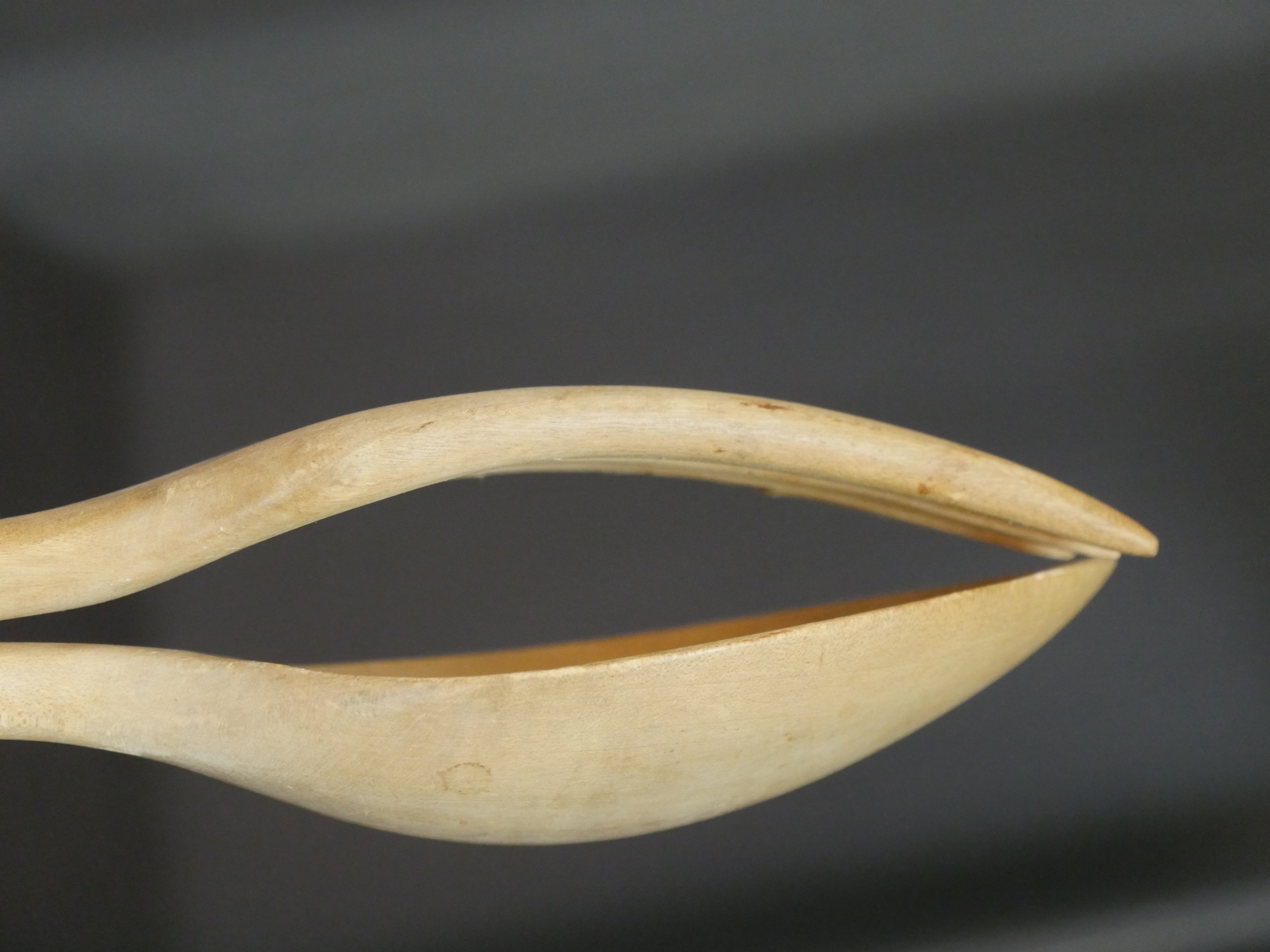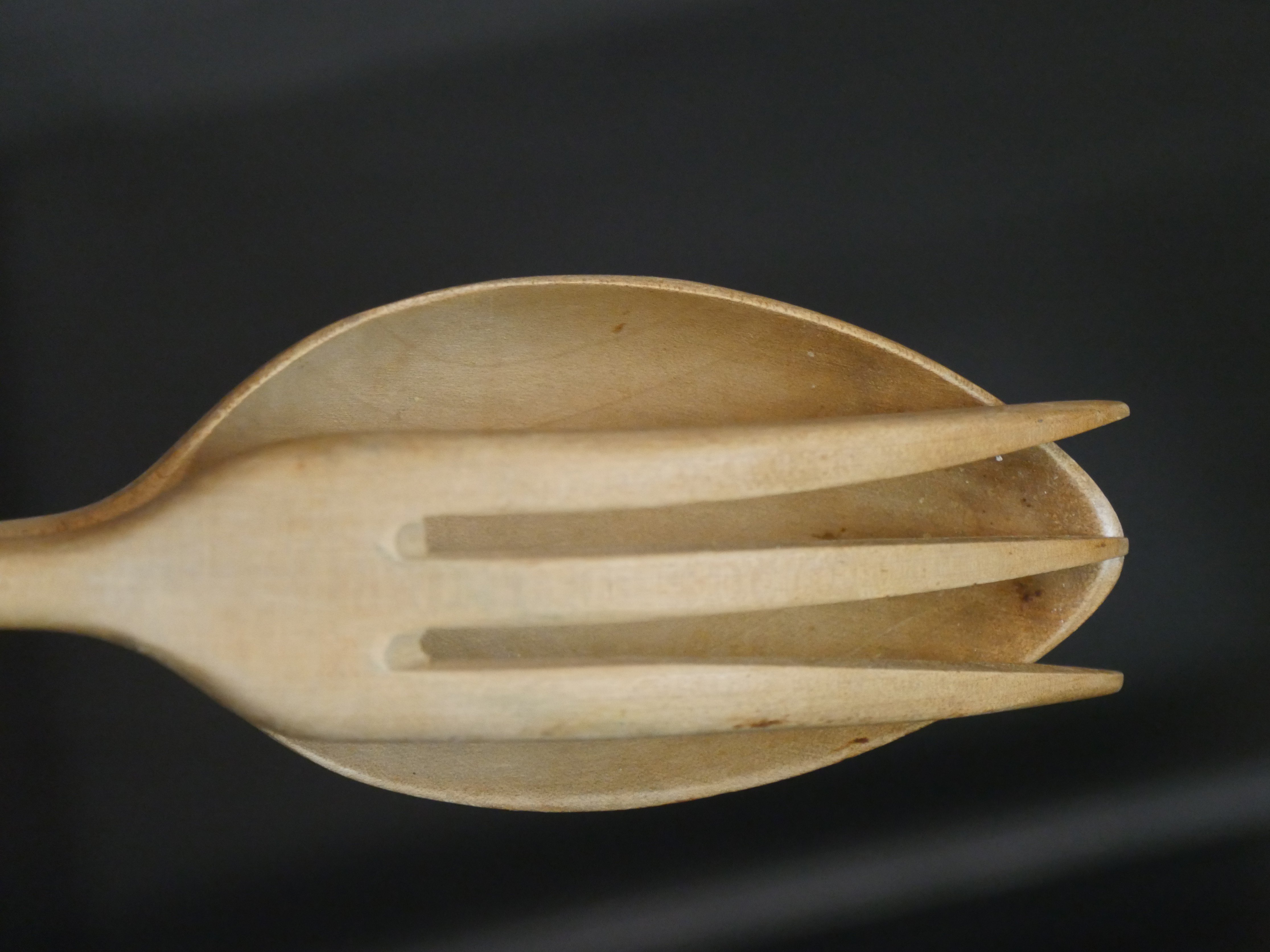 When I first saw them in the shop window I was more bemused by aspects of how they were made, but then realised that the whole process involved elements of woodworking such as heat bending, carving, fitting, shaping, tapping and dying and such things that developed the form from determining not just its functionality but how it would function. The scalloped spoon was for me the epitome of refined woodwork in sycamore as was the fork with its splayed outer tines curved to greet the fore edge of the spoon perfectly. Of course we’ve seen these in plastic, or at least I have. But they were cheap, nasty, stamped out, spring-loaded trash-versions, artlessly produced in plastic injection moulds by the thousands.