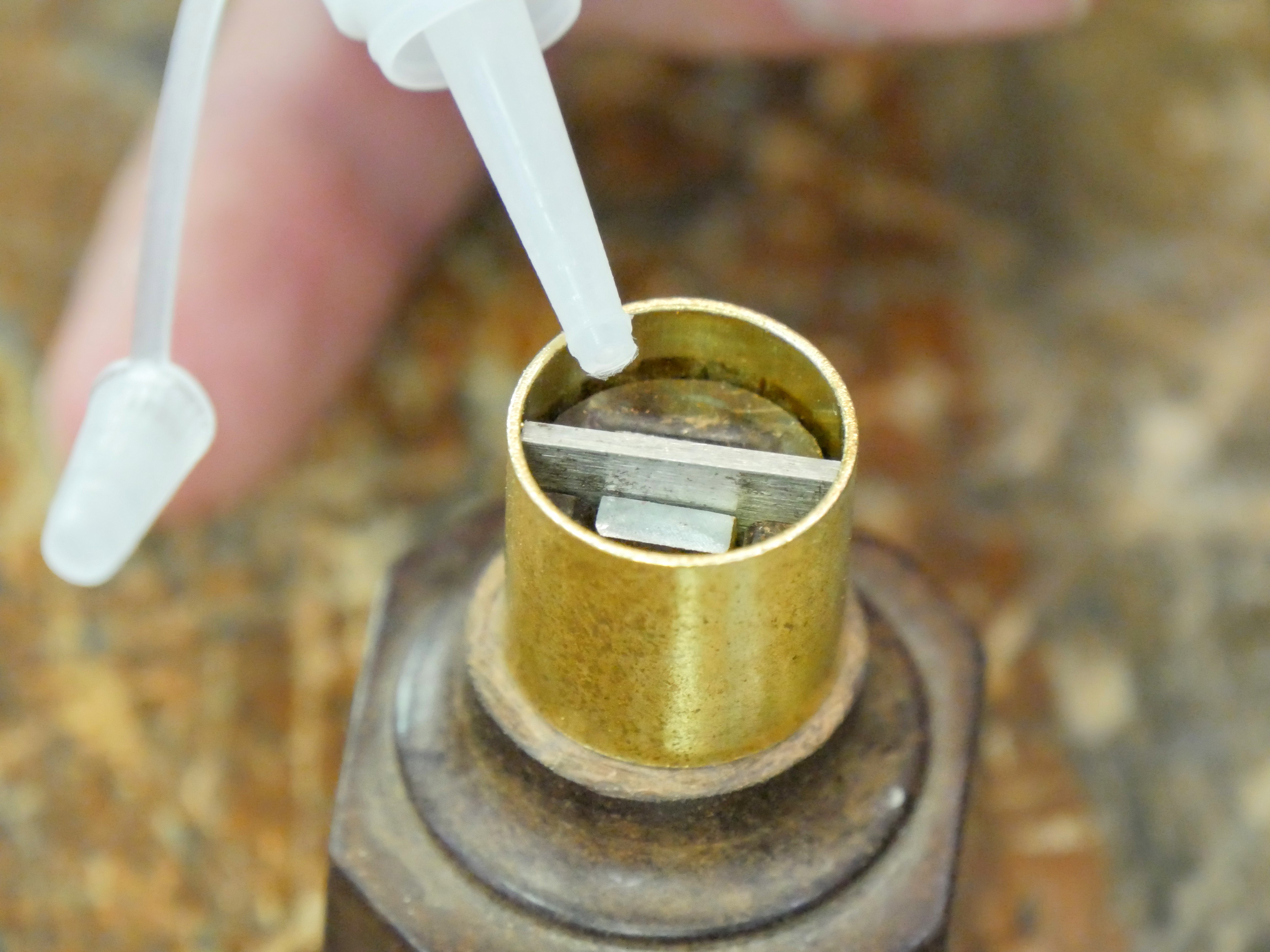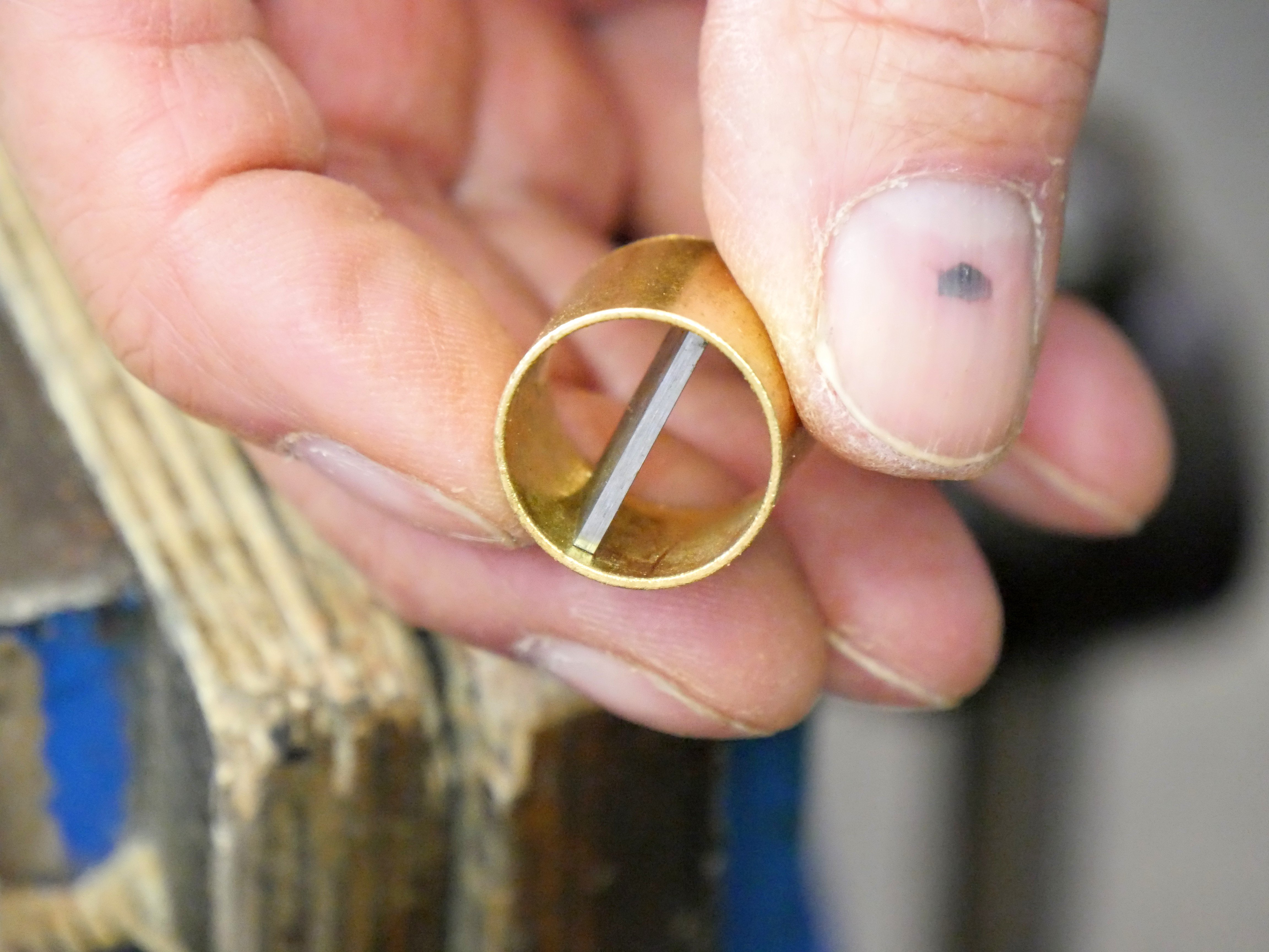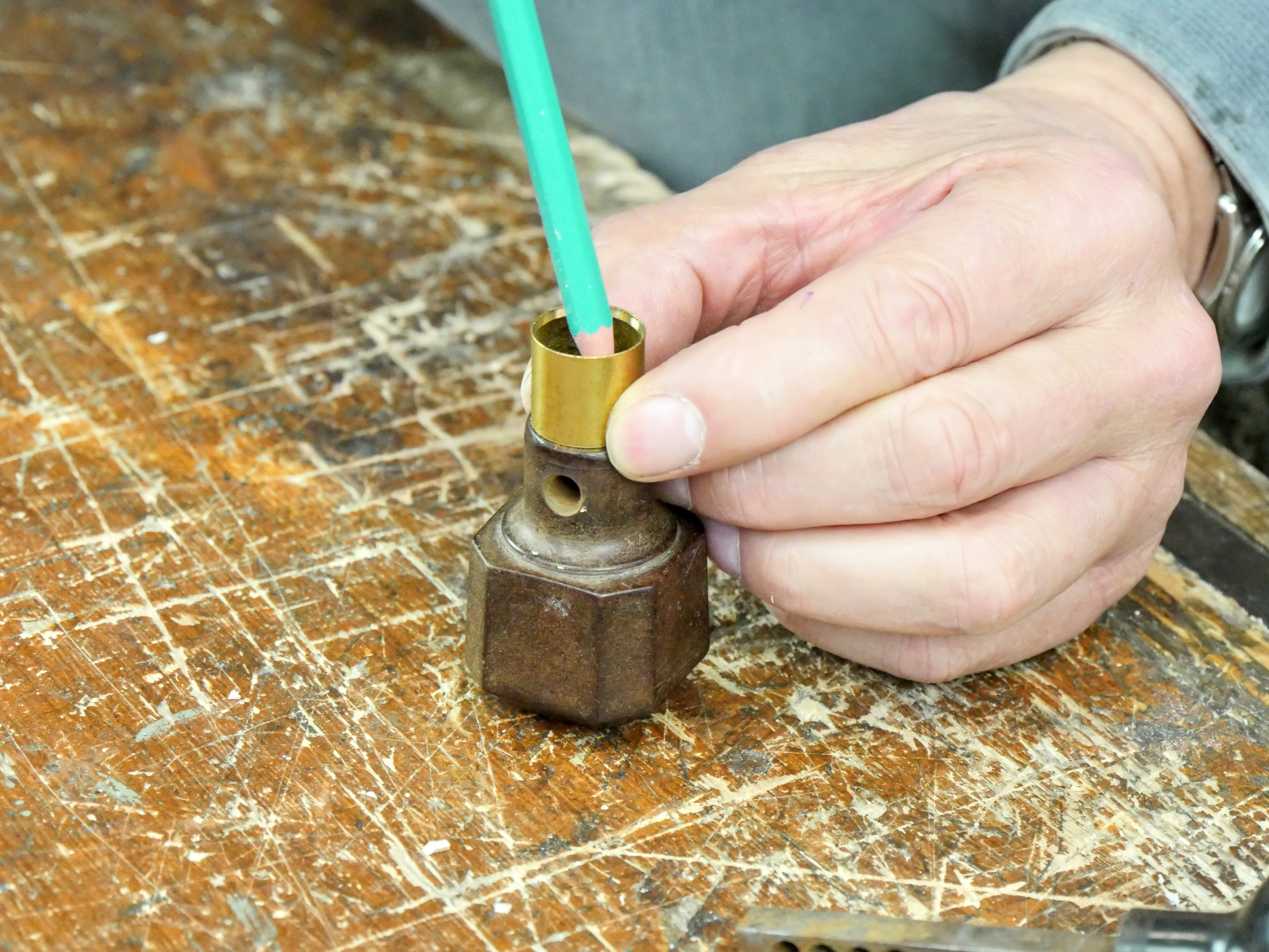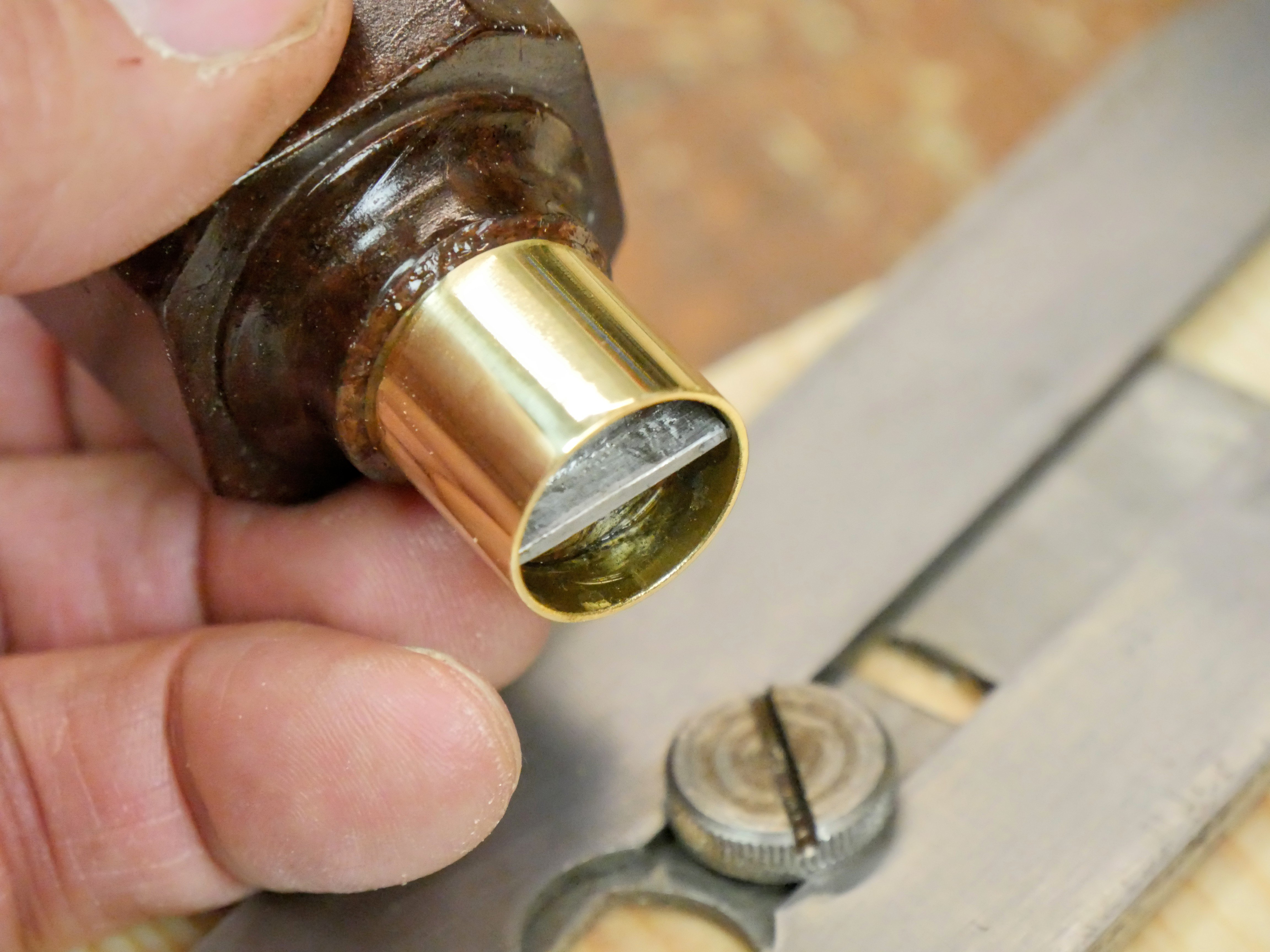 I polished the brass ferrule on a buffing mop on an electric grinding machine but you can just use a strip of leather charged with buffing compound.