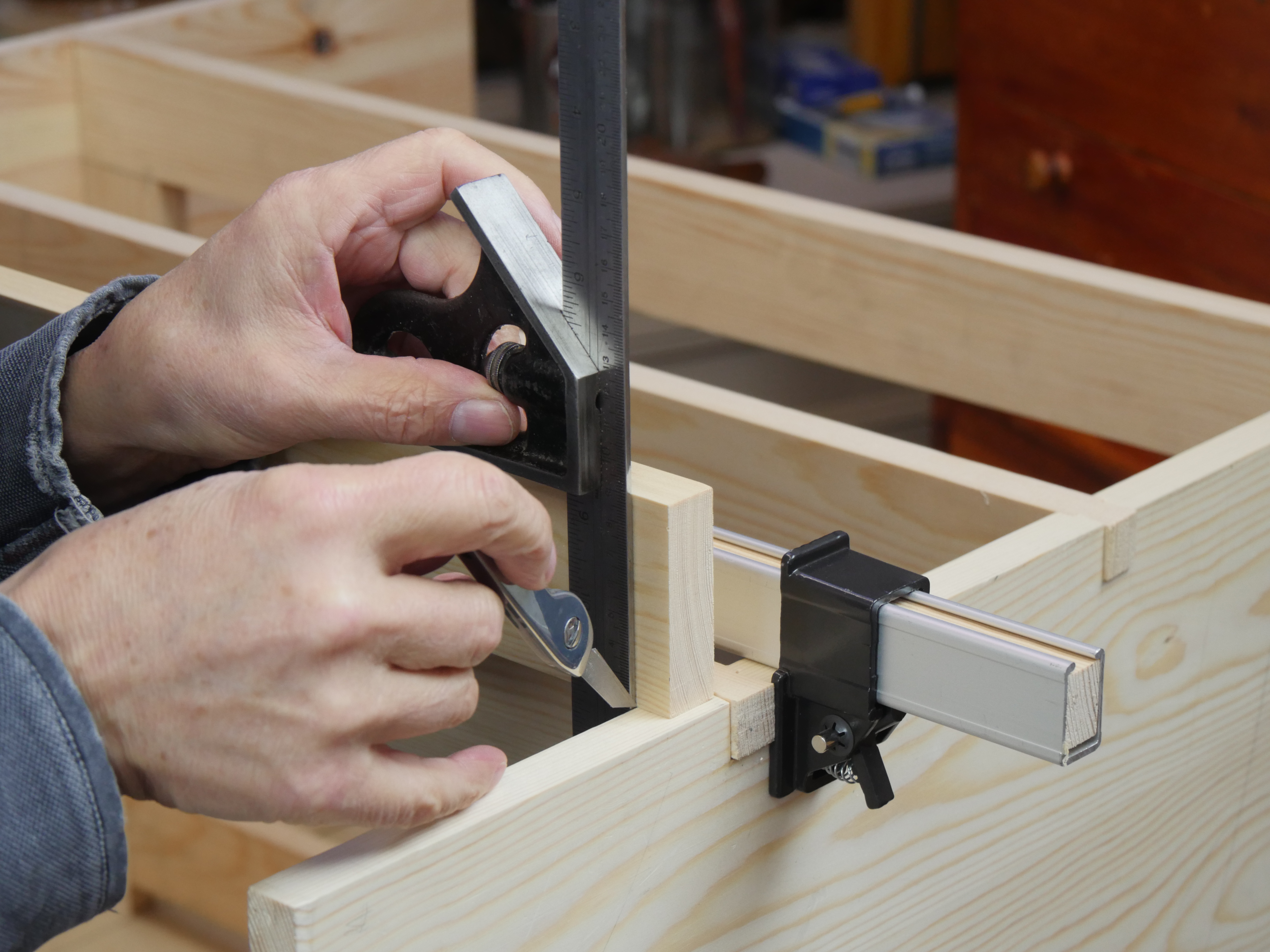 Here you see a prototyping element used in the dresser I am currently developing for filming. In this case I am checking constantly for measurement I am using and indeed giving to Greg who will work on the final drawings for people following the upcoming masterclasses project. It's a joint I have made dozens and dozens of times, but every element of sizing and distancing must be exact.