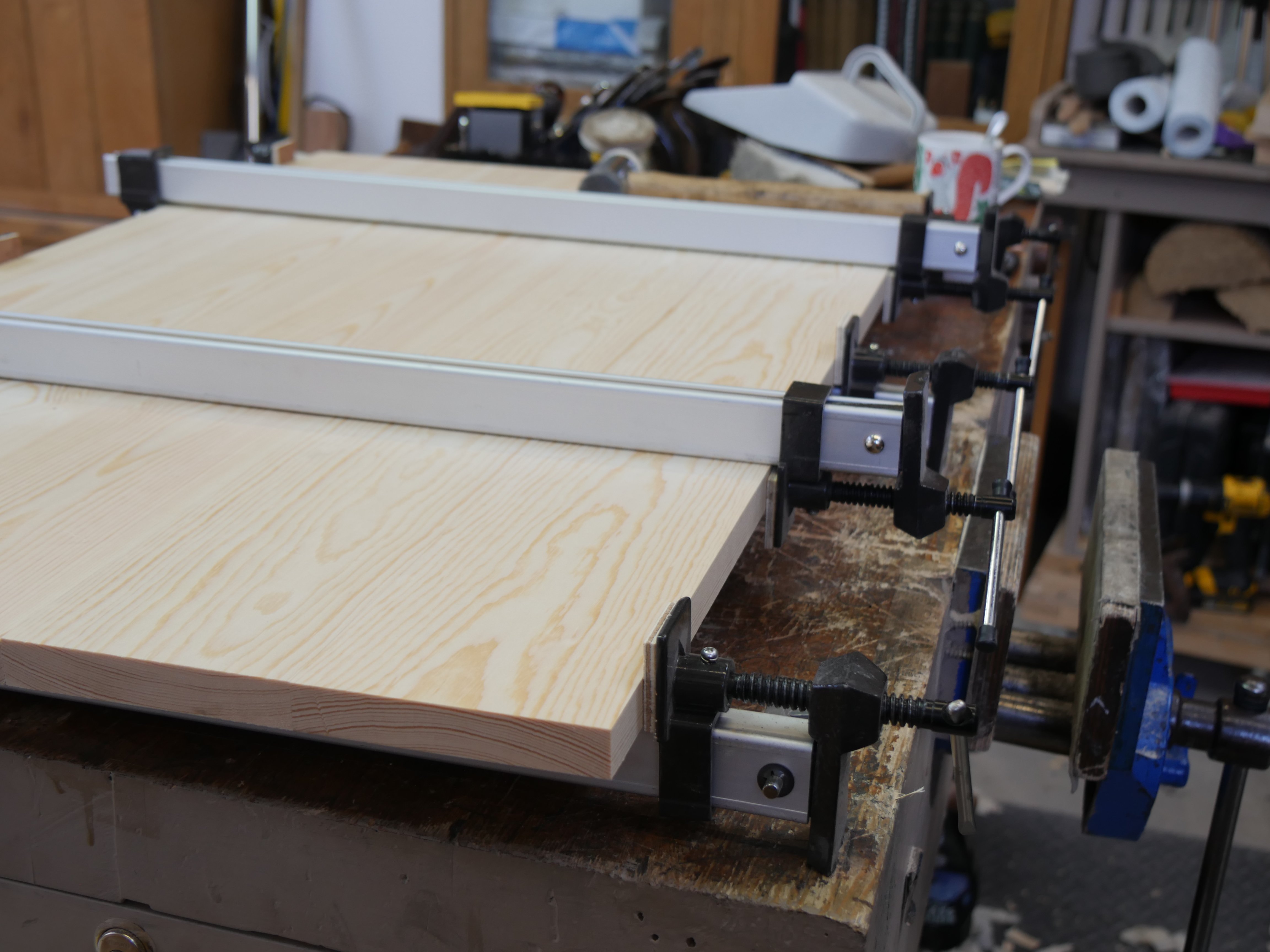 When I lived in the USA I discovered a line of sash clamps made for Harbor Freight, a US chain supplying DIY building and engineering products, mostly low-end quality. The clamps were made from extruded aluminium boxing with an alloy head and shoe and whereas they were not at all a top quality, they were lightweight and strong enough for most work. I used them there for a decade or so and they were adequate. Unfortunately the clamp heads were made of some low grade alloy with air holes throughout and so where the head connected inside the alluminium extrusion they periodically snapped, and regularly enough to be an issue. That said HF replaced without question no matter how often you took them back or when you bought them. It was on these clamps that I perfected my retrofitting techniques and whereas I could do nothing about the snapping heads, I could beef up the clamps as I have blogged before and make them function much better. For the then $5 price tag they were a bargain.