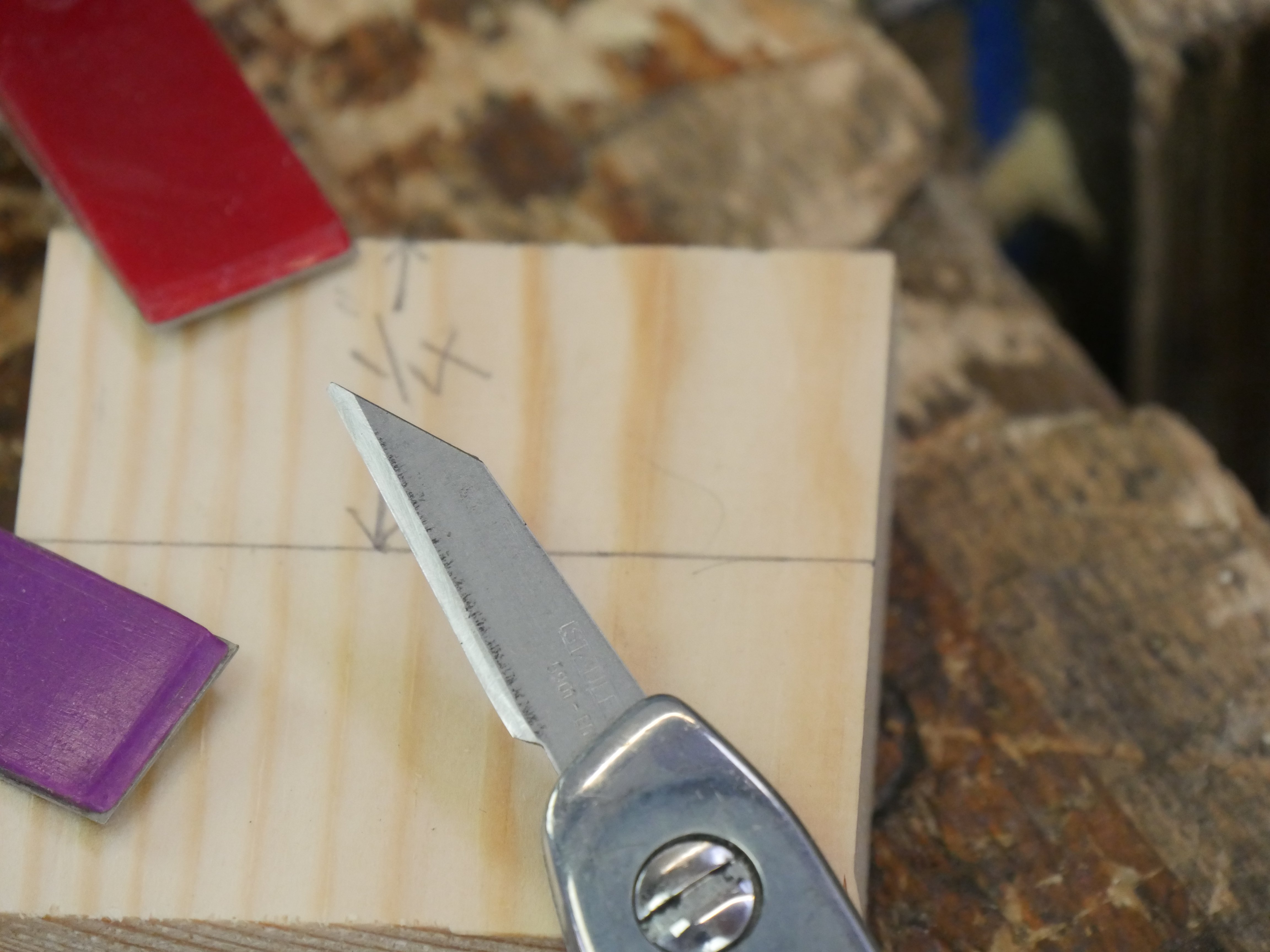 Today my system is even simpler than ever. Keep a block of wood marked as shown with a line squared across at 30mm (1 1/4").