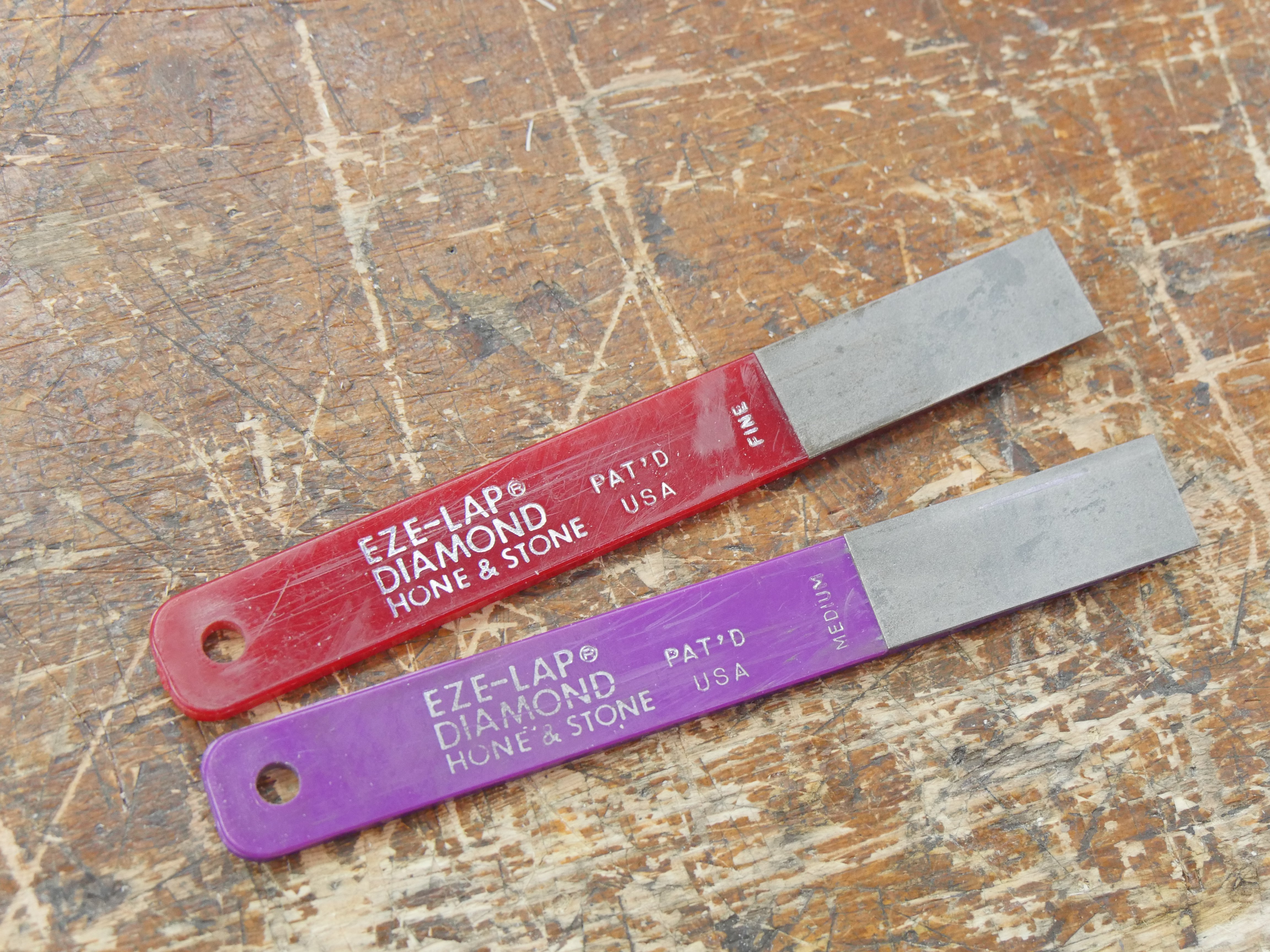 A simple tool I ave come to rely on more on more, especially at the bench, is my diamond hone. I use it almost every day now for sharpening tools including even saws and especially do I like it for knives as well my other refining endeavours. It's relatively inexpensive, versatile and achieves excellent results on my bench knives. Whereas in times past I always simply touched up my layout knives freehand on bench and diamond stones, and I did this for decades, I found that the blades did tend to lose the kind of refinement a new blade gives with its pristine cutting edge and shallow bevel from the makers. A blog I wrote a year or more ago told of blades that could be had at a fraction of the cost of Stanley blades might seem to be the answer, but, as you will know of me, I try not to advocate throwaway blades of any kind. It's also quicker to sharpen knives using my system than changing the blade out. Anyway, though the Stanley knife I advocate is indeed a knife designed for throwaway blades, I recommend them because the are the best knives I have come to rely on and you don't kneed to throw away the blades at all, just treat them like any other pocket knife and simply sharpen them.