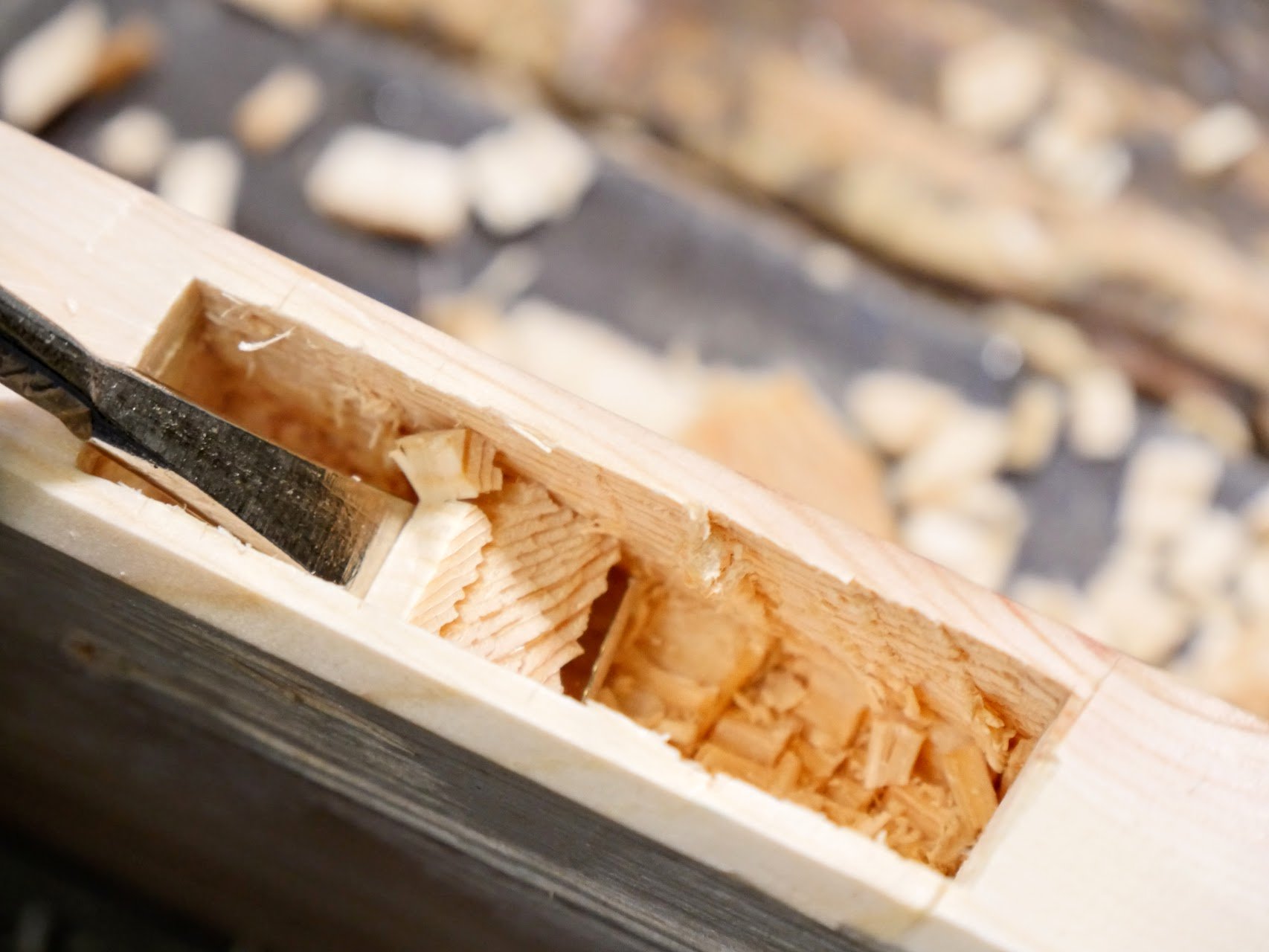Someone else asked about the rule of thirds when he saw the thin walls to my image showing the chip remover in use from a roughly chopped mortise to show how the "chiphook" worked (It was indeed done purely as an example.). Anyway, the thirds rule is where the two side sections either side of a mortise hole are the same size as the tenon is. So in 3/4" stock the mortise is 1/4" and the outer flanks too. That way the tenon is 1/4". But of course there are many situations where the only unifying factor is the tenon size and not alignment faces. Sometimes, as in the case of say doors, the mortise and tenons are indeed aligned and centrally placed in the stiles and rails and sometimes, perhaps not in equal percentages every time. A table leg is more often not flush with the outer face of the leg but set back to give more substance around the mortise hole. It is also common to have offset shoulders to tenons to move a rail further back or further forward too. It is a fact that without careful consideration you can take some suggested positioning and sizings and make them law when that could perhaps render them near useless with regards to strength. I recently saw this happen in someone's work.