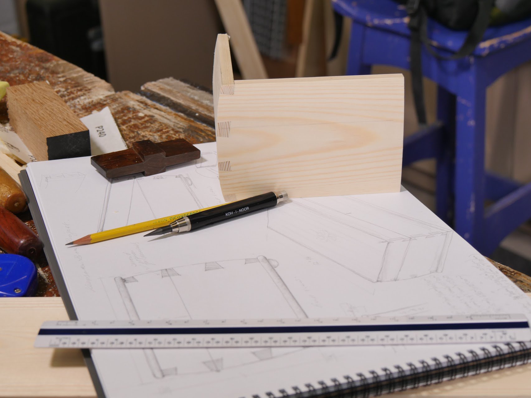 So, yet another project emerges from a few sketches, some pencil lines and then some shavings and sawdust on my bench. Now to pick out the wood, sharpen up my tools and start on the real thing. I think you will like the twist I brought to the dovetails to make everything work. The subtleties are not at all obvious from the outside.