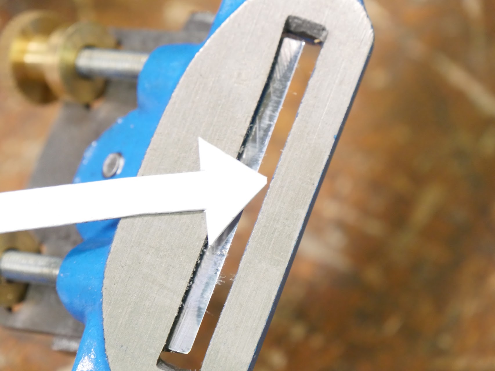 The mouth gaped like an open yawn because the sole face was ground down too far into the body of the casting and also at the wrong angle, which in turn altered the bed angle for the blade. The cap iron was cut way too short to reach close behind the cutting iron in the bottom of the throat. The keyhole was too short-reaching and the slot in the cutting iron was too long and too far from the cutting edge. Once the cutting edge was aligned, the setscrew slid through the hole in the cutting iron and so became impossible to secure the blade tight enough to use.