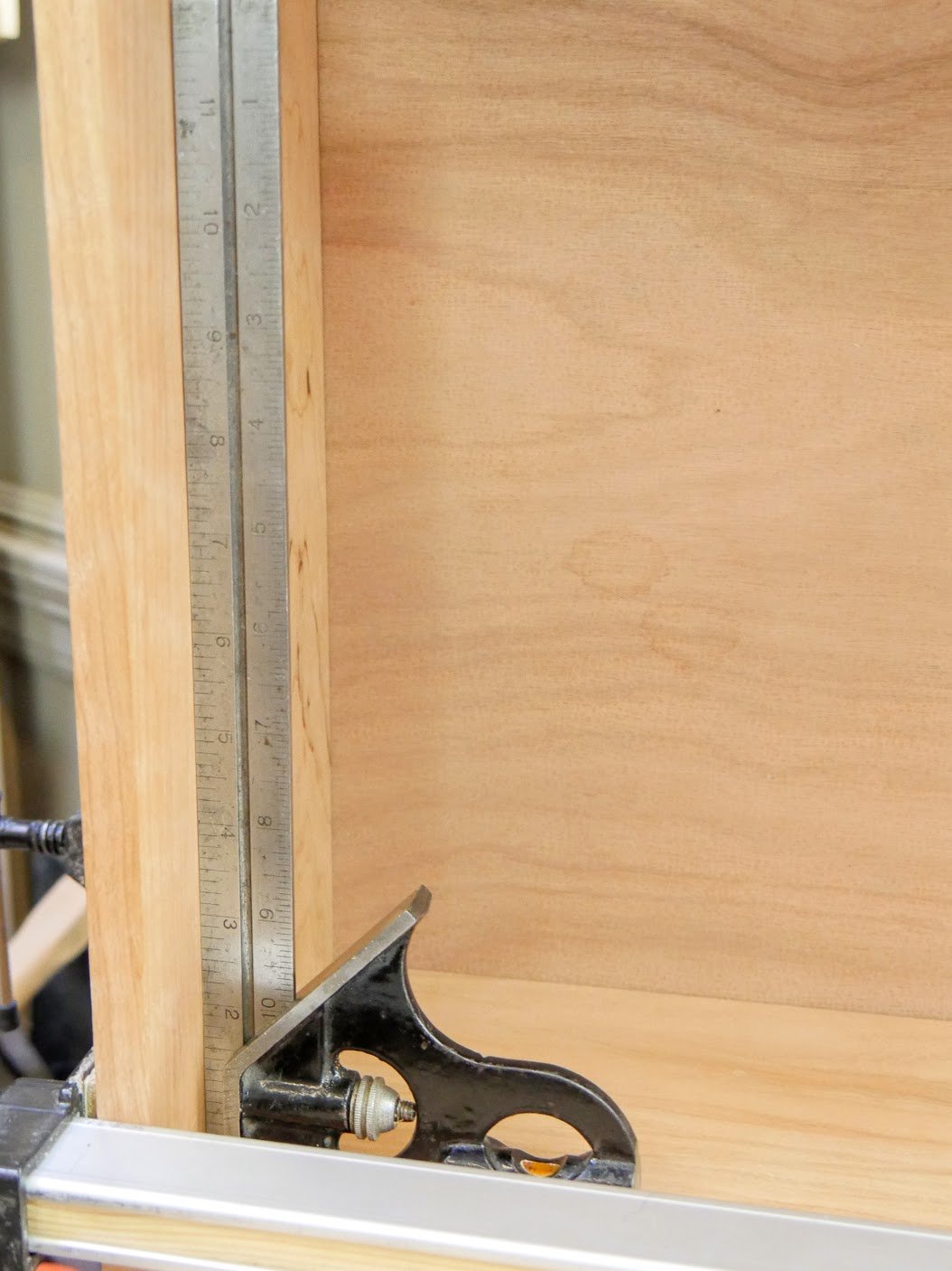 Well, anyway, I saw the square standing in the corner of my final drawer of my dresser-cum-chester-draw build as I had left it and remembered George, my old apprenticing mentor from 1965, who did the same thing. I had noticed every so often he'd leave a square on the internal corner of drawer just so and then on other pieces too. After noticing this seemingly innocuous trait I identified a couple of parallels.