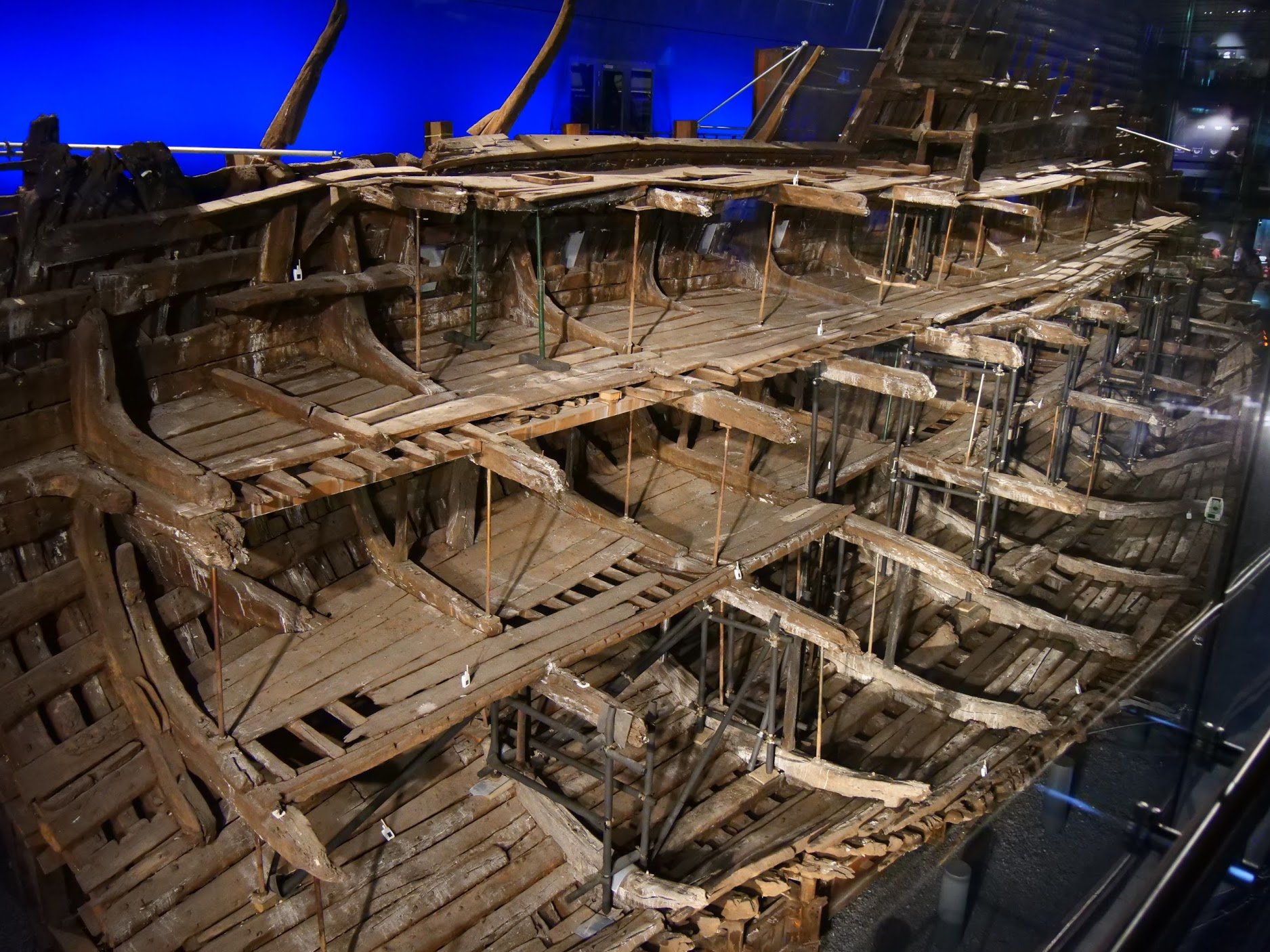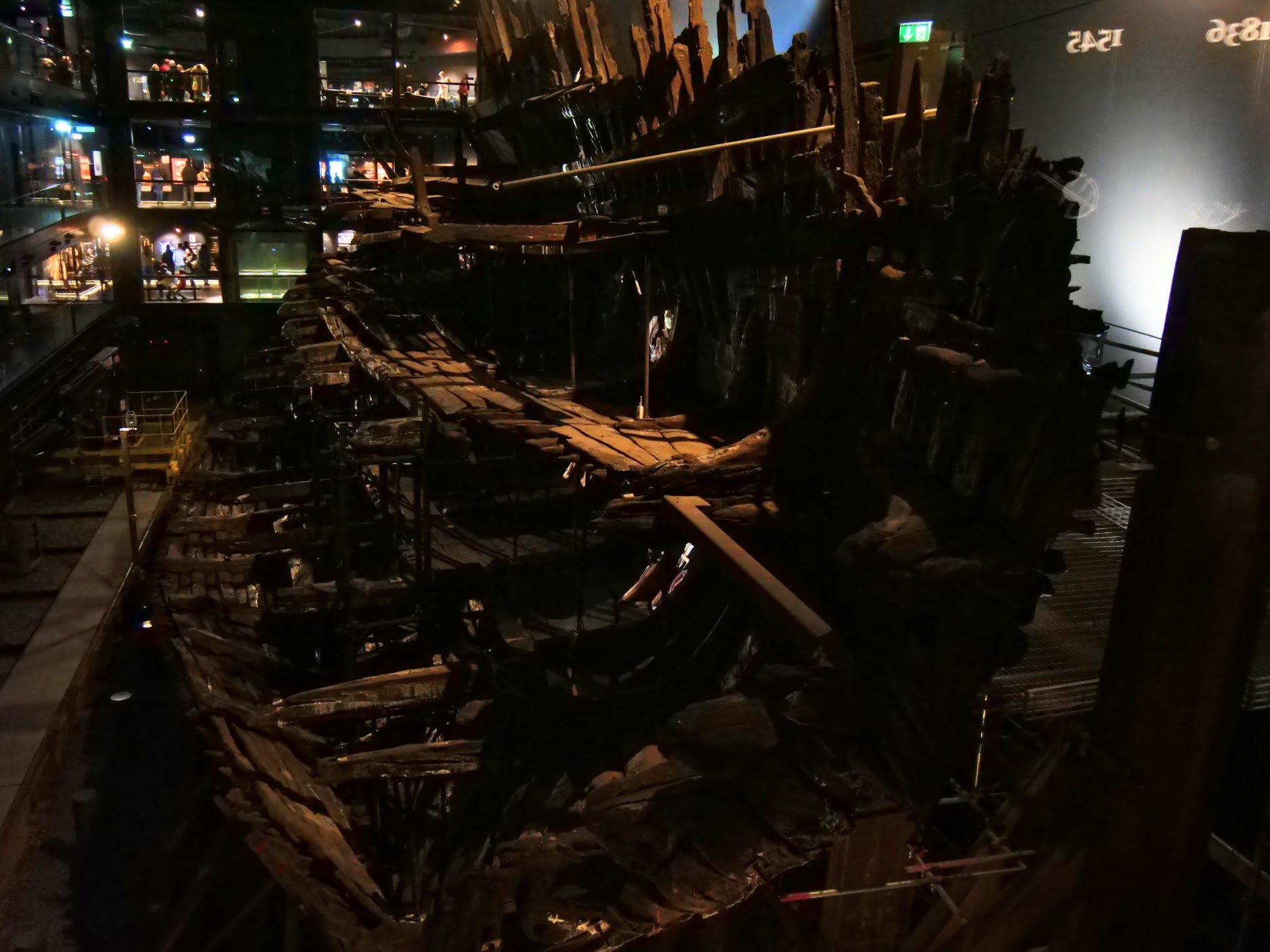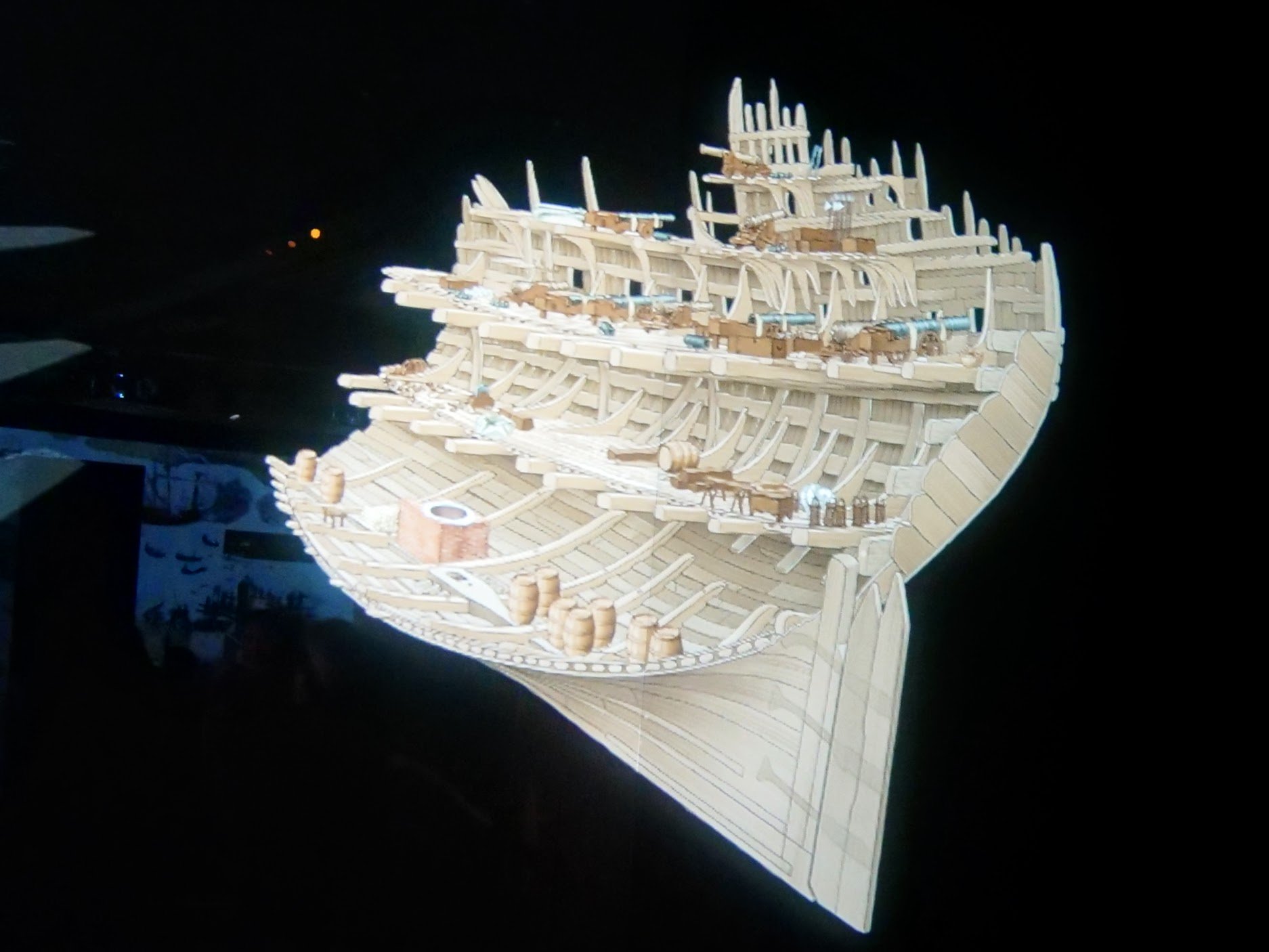 The museum takes you through multiple floor levels adjacent to the ships hulk for you to witness the mass of the ship. The imagination of any woodworker runs riot even though you can’t actually get within 50 feet of actual wood connected to the ship’s body mass. But imagination is a marvellous thing and you definitely see the work of visionaries. This ship, built from 1511 onwards, worked as a warship at sea for 33 years before its fatal day in 1545. Though its location has been long known, the technology needed to retrieve it intact as much as possible didn’t arrive until the 1980’s . the Mary Rose came back into daylight for a brief time when a huge steel frame was built to undergird her great mass from sea to shore. The frame remains as backstage support as an external skeletal structure. The darkness in the museum is atmospheric as well as protective. Climate control is imperative for the wellbeing of the hull so the dark history of the era seems to be reflective of the era and causes deep reflections as you look over from the balconies. It's much more than just, well, plain interesting: more deep.