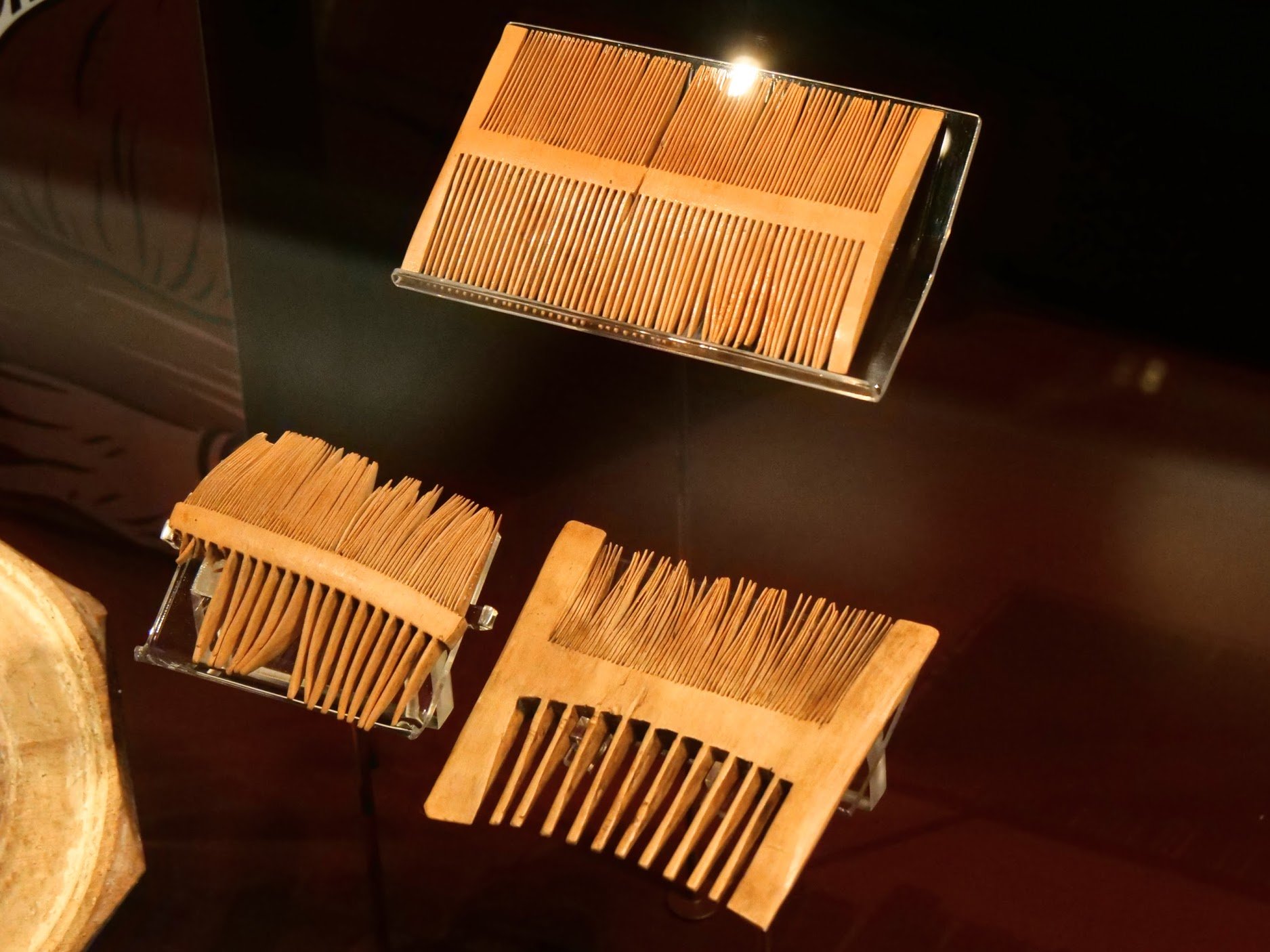 I have some laurel I have dried that is most suitable for making wooden combs from and I plan to make some to both use and to understand the process. It would help to handle one of these for ten minutes. But just look at these, all three fine toothed on one side and more coarse on the other; you realise of course that these men set the precedent for the plastic versions we might be using commonly today, yet we might think it was a more modern design development. Remember here though that most men wore beards that also needed combing, hence two levels of tooth sizing. I have heard people sat that once you use a wooden comb you will never return to plastic. Soon I will know. I have a lovely horn comb bought for me as a gift that I like to use, and I have some very fine plastic ones too. I look forward to making the wooden ones very soon.