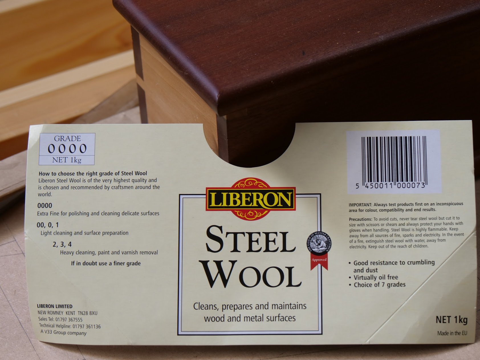 Rub with the grain where possible. Steel wool is different than abrasive as it cuts the surface rather than abrades it with particulate. It also creates less abrasive particles too. With a few rubs the surface is ready for coating. I did the whole of the outside and the rim of the box.