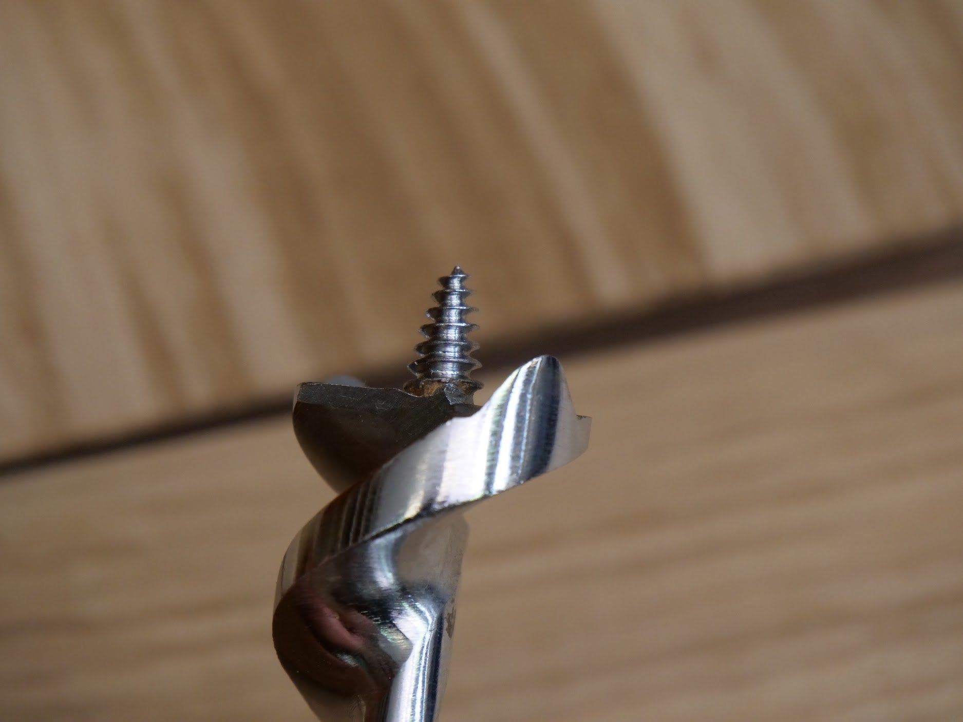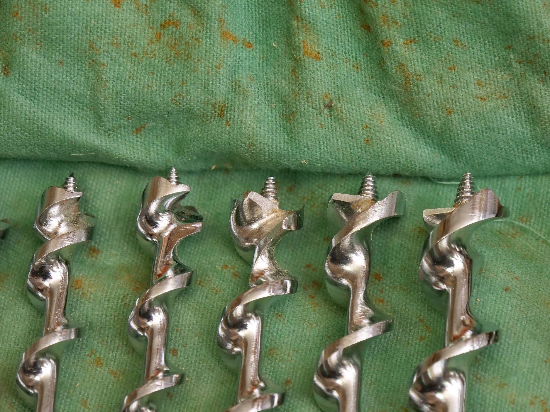 You can see the condition of the bits here. Always check for how much they have been sharpened. If the spurs on the outside are filed too much the rim of the hole will be ragged.