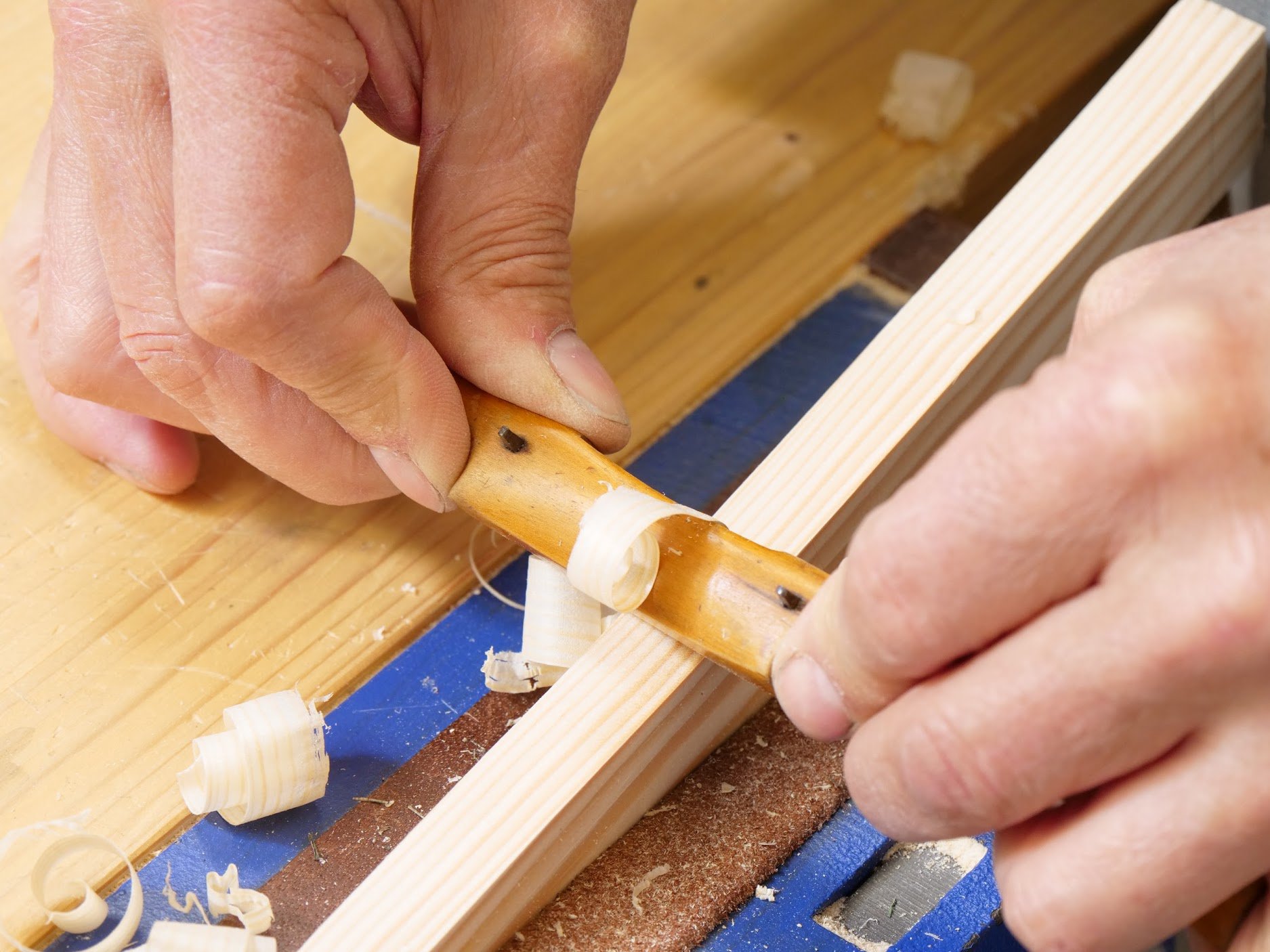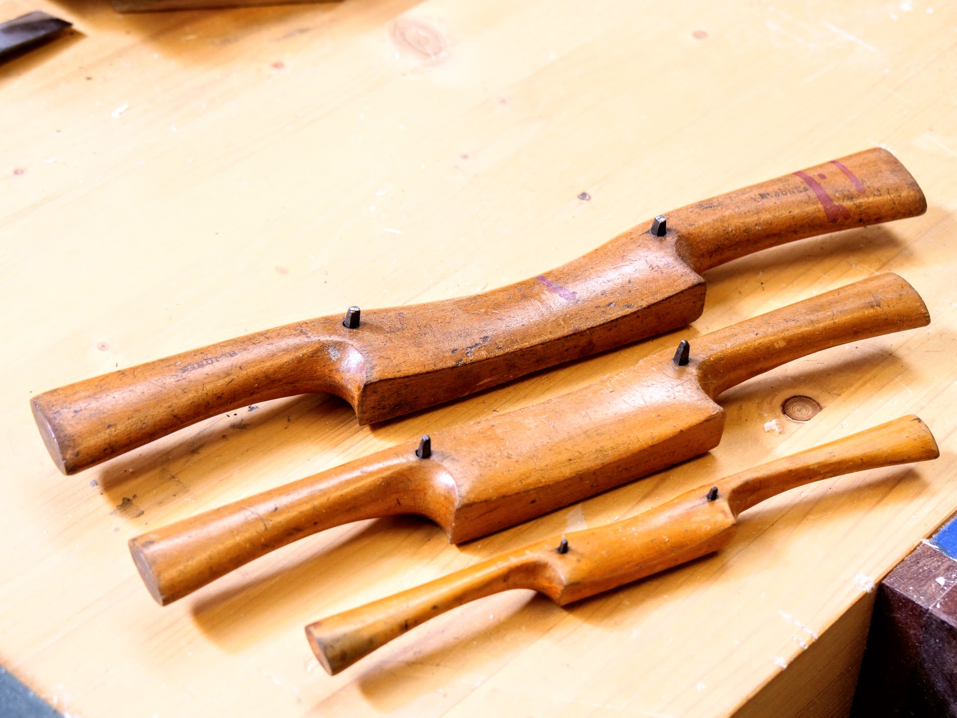 Such tools were harder to find because, well, there was no eBay around and there was really not such thing as internet selling and buying. The only knowledge I had of old tools was what I saw in tools chests at my working at the bench. The selection of specific tools back in the 1980's for instance would be very small when compared to looking on eBay and seeing perhaps a hundred wooden spokeshaves at any given time. It wasn't that the tools were not there, it was that they were buried as junk in cellars and attics, sheds and garages. No one could really access a market to buy or sell without a great deal of effort. Then of course you had to deal with, well, dealers, who wanted what you had for very little money or even nothing. These three spokeshaves are eBay finds. I love the small version as a round-bottomed version.