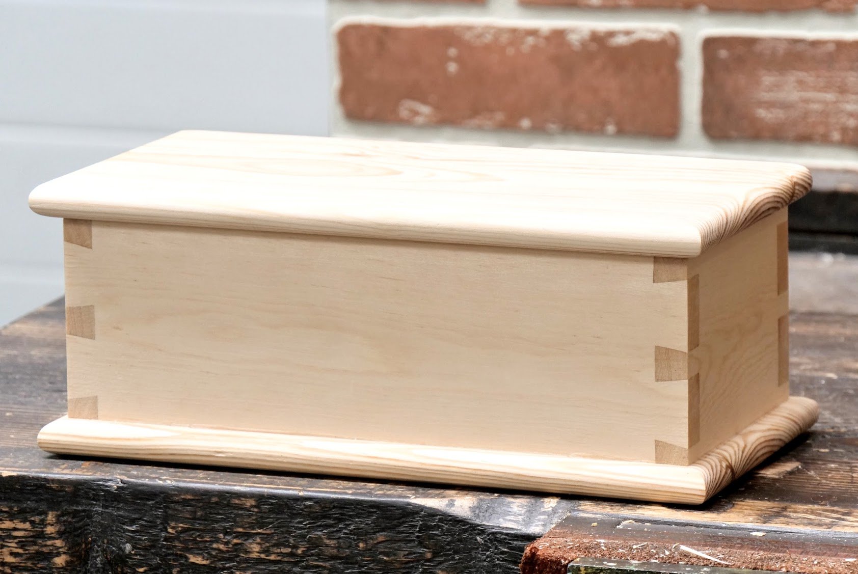 Remember, this box took me 48 minutes from beginning to end including the finish and no machines were used beyond dimensioning the wood. It's a bit beaten up now after years on display and being dropped twice on concrete.